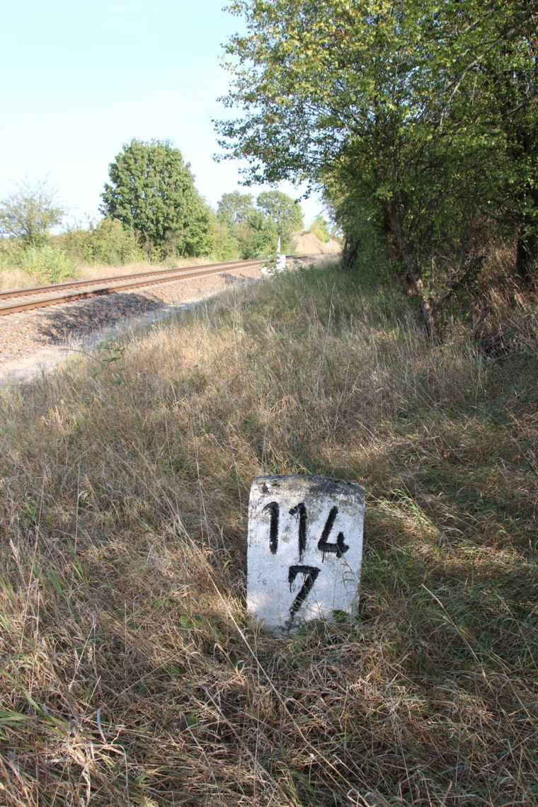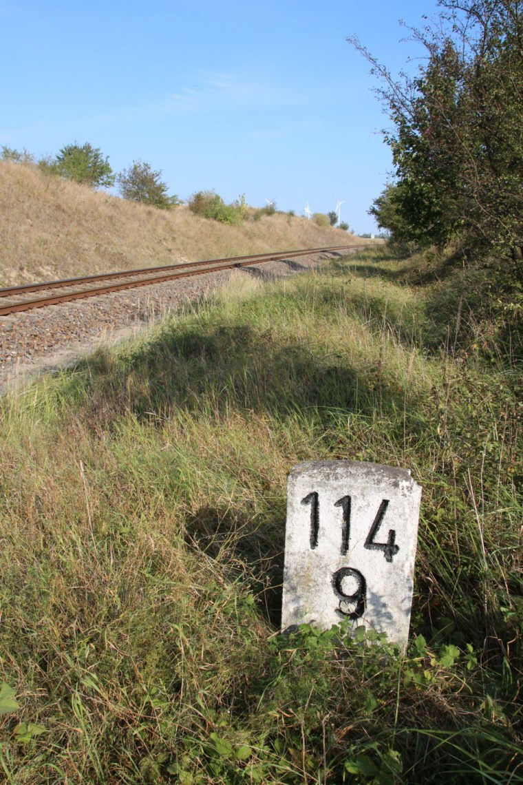 ► | km 70,67 der abgehenden Strecke (Berlin Stettiner Bf -0,28) - Angermünde 70,67 - Jatznick 142,88 - Ducherow 163,19 - Züssow 191,90 - Greifswald 209,60 - Stralsund 240,80 mit weiterlaufender Kilometrierung (Streckenverzweigung mit gemeinsamen Nullpunkt Berlin Stettiner Bf) | |