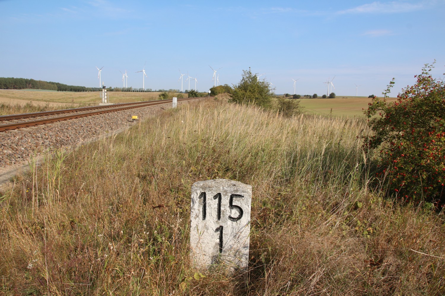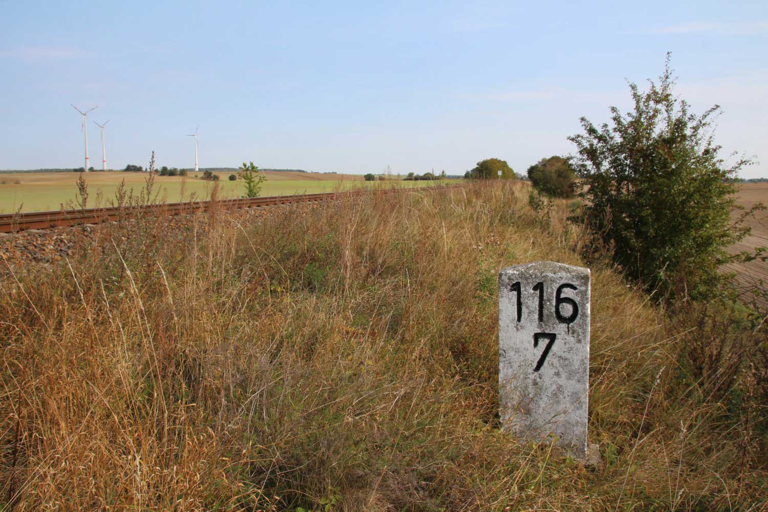 ► | km 45,24 der abgehenden Strecke (Berlin Stettiner Bf -0,28) - Eberswalde Hbf 45,24 - Werbig Abzw. 101,17 - Frankfurt (Oder) Pbf 131,11 mit Abzweig Werbig Abzw. 101,17 - Werbig Gbf 102,54 (auch Angabe 102,66) mit weiterlaufender Kilometrierung (Streckenverzweigung mit gemeinsamen Nullpunkt Berlin Stettiner Bf) | |