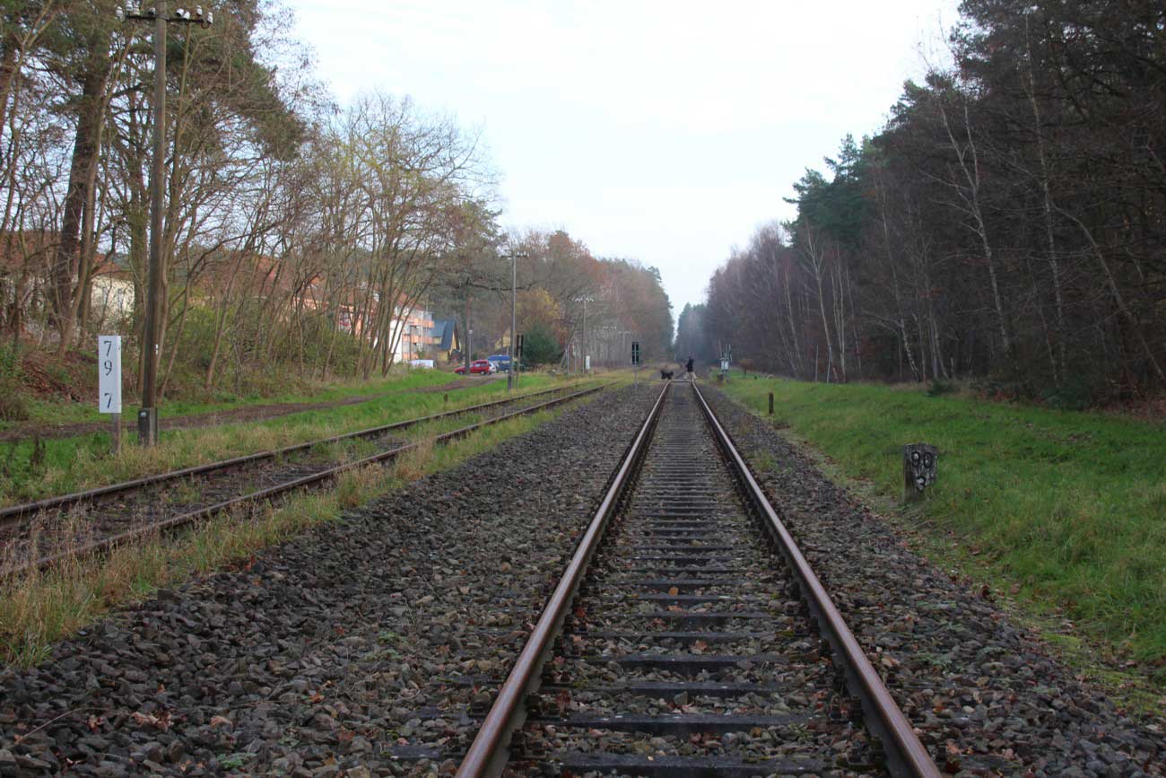 Rechts das Planum des Gleises nach Fürstenberg Nord