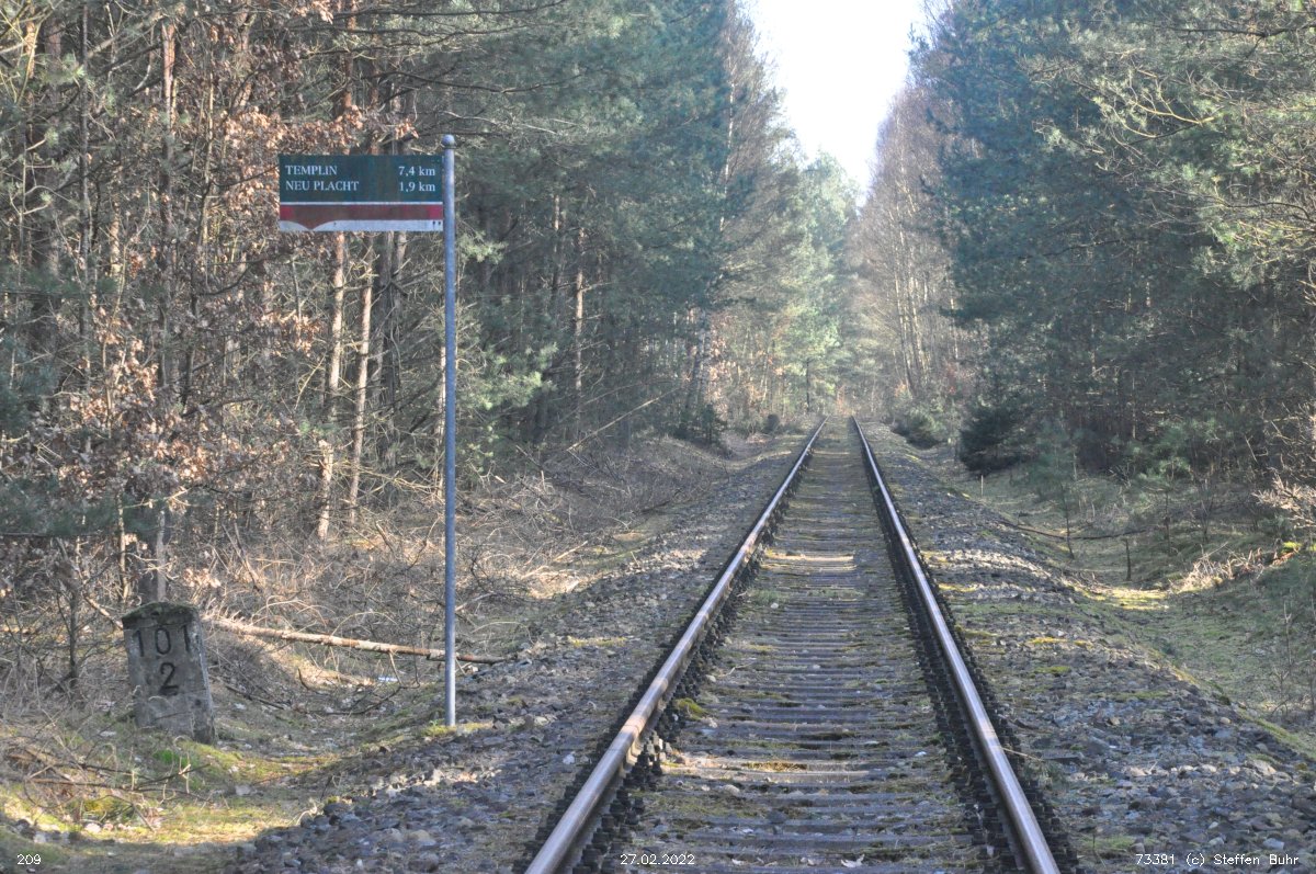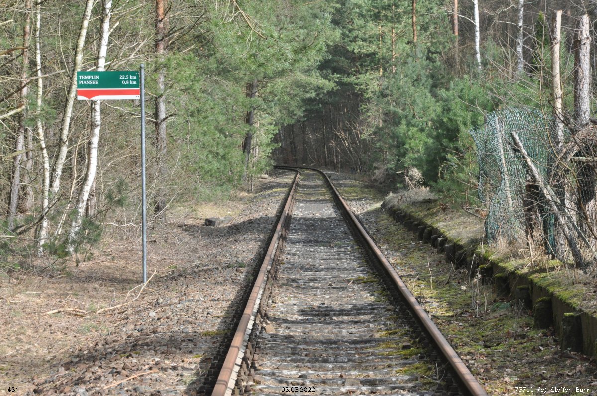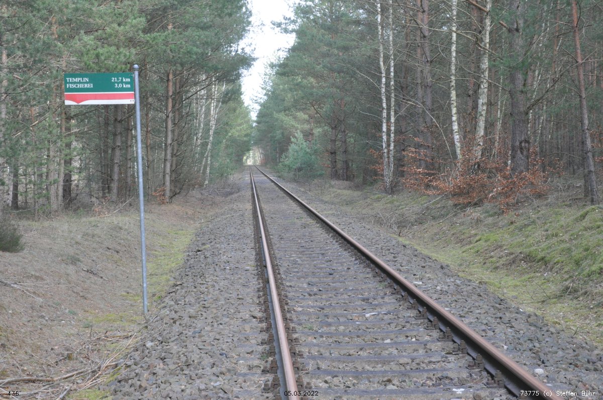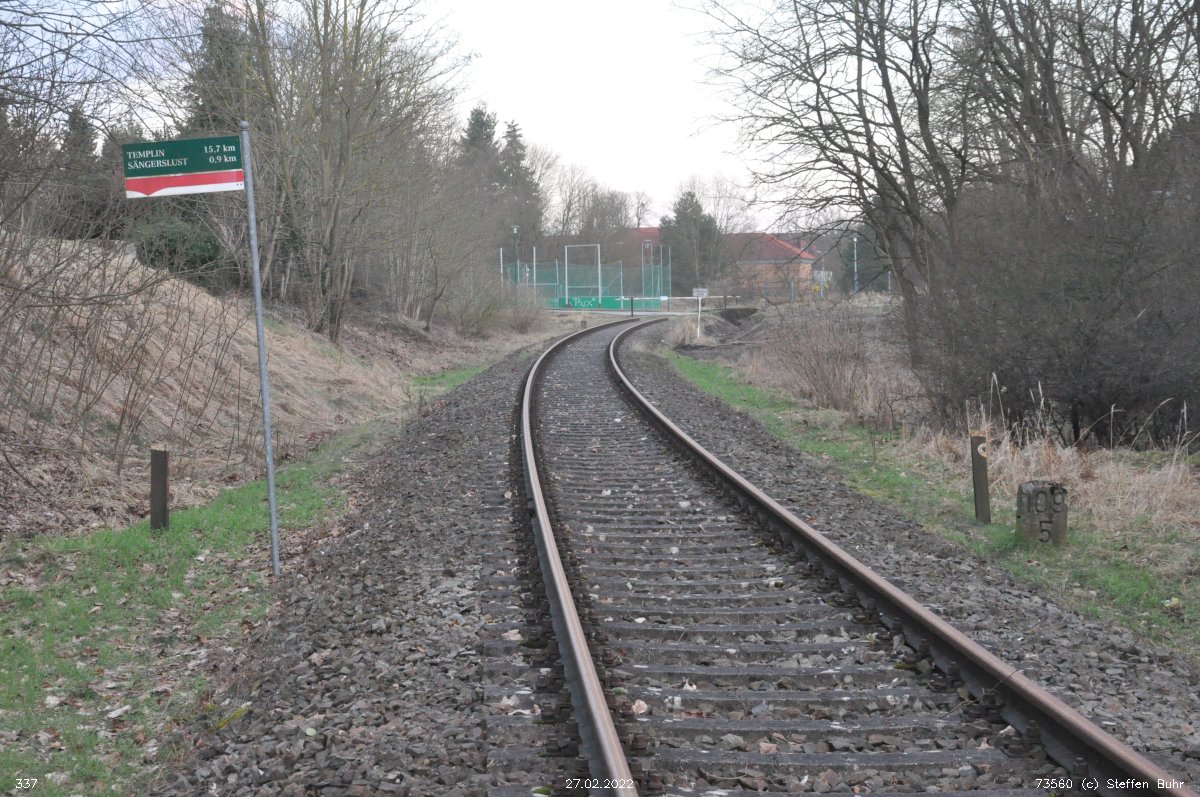 Templin 92,68 km 77,32 der Strecke (Berlin Eberswalder Straße 0,01) - Löwenberg (Mark) 44,25 - Templin 77,32 - Fährkrug 82,30 - Prenzlau 119,42