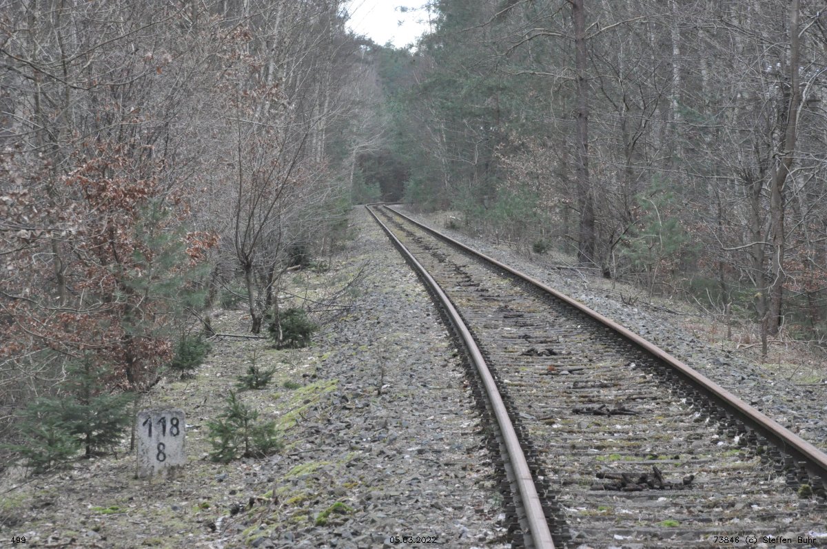 Links die ehemalige Verbindungsstrecke Abzw Ragöser Mühle - Abzw Schieferberg
