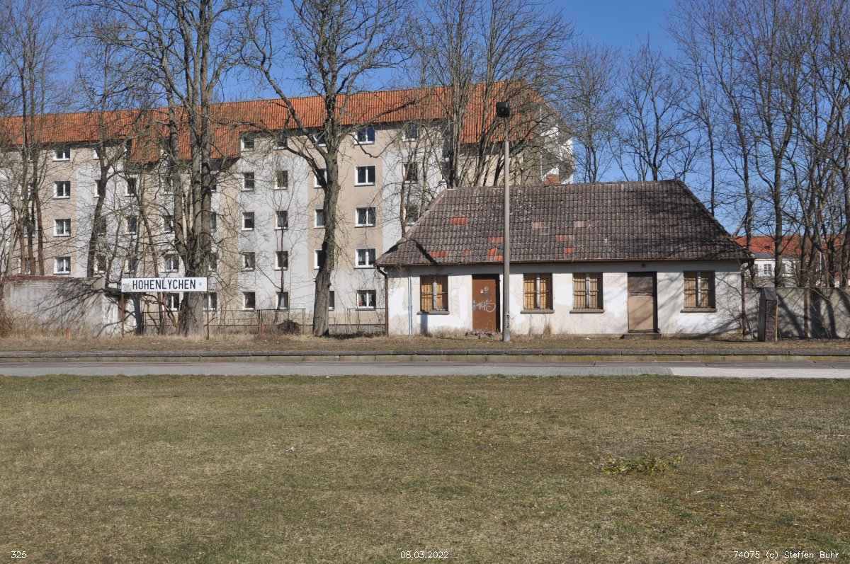 km 50,02 der abgehenden Strecke Berlin Nordbf -0,28 - Grenze Berlin West/DDR 2,74 (Streckenunterbrechung) - Berlin-Pankow 5,60 - Angermünde 70,67 - Grenze DDR/Polen 119,585 = km 10,069 - Szczecin Główny (Stettin Hbf) 0,063 mit weiterlaufender Kilometrierung (Streckenverzweigung mit gemeinsamen Nullpunkt Berlin Stettiner Bf)