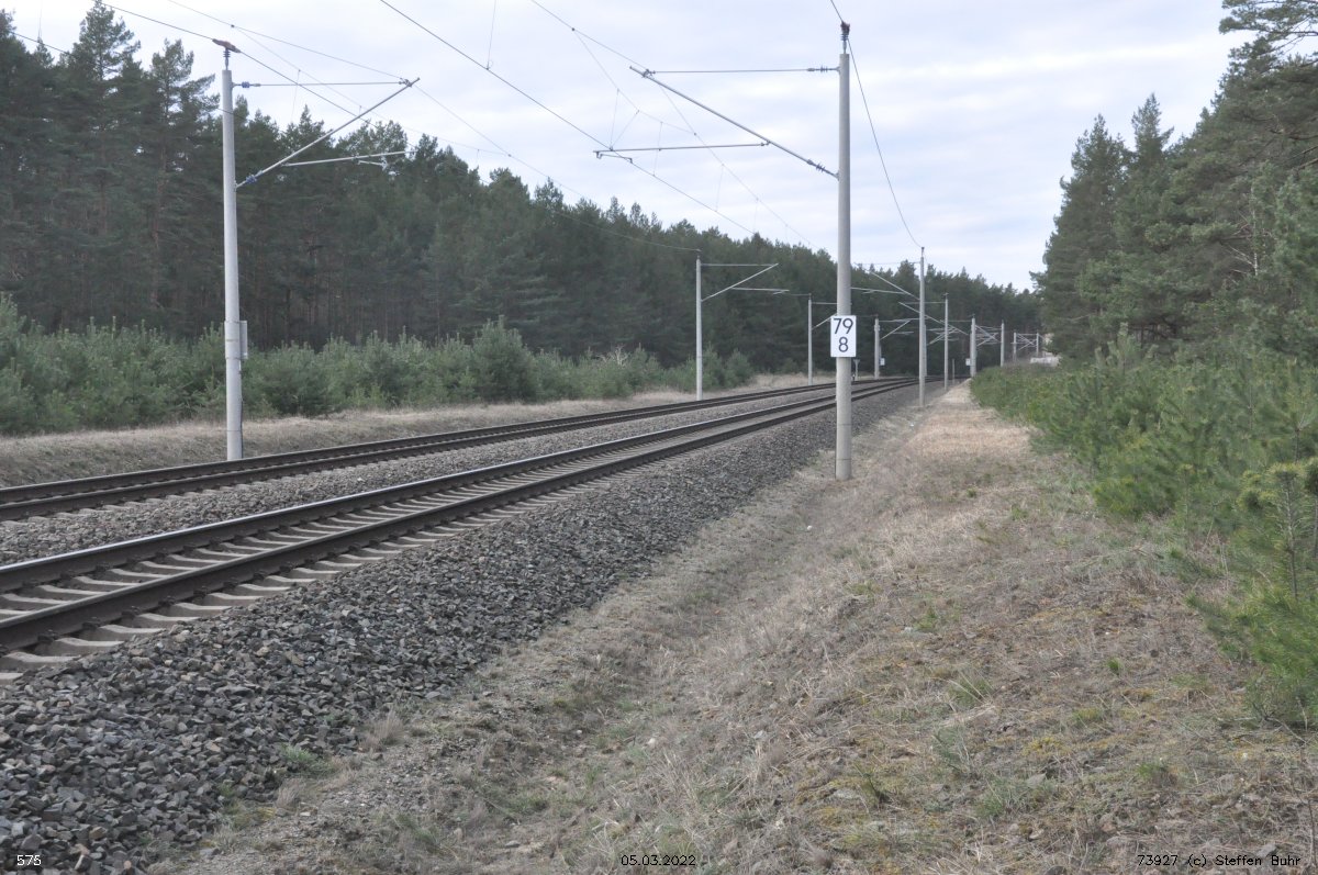 km 121,8 zwischen Ravensbrück und Fürstenberg (Havel) am Abzw Vdü - Blick Richtung Fürstenberg (Havel)