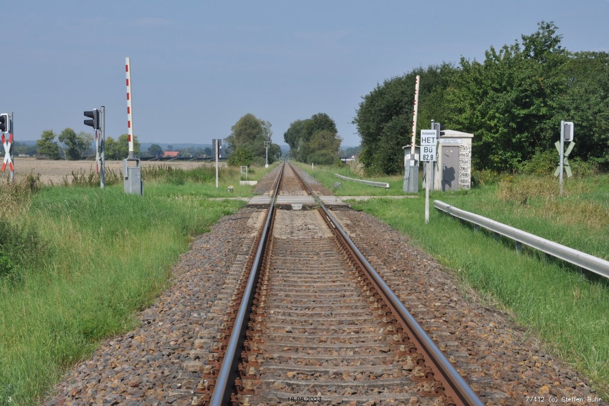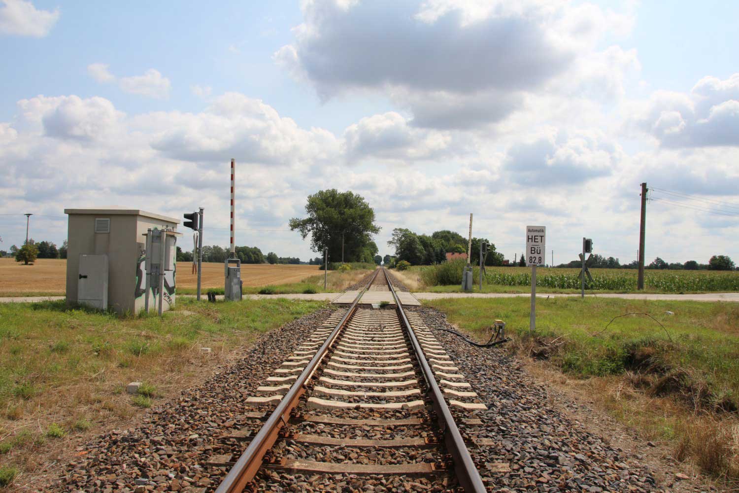 BÜ km 82,8 zwischen Wriezen und Neutrebbin - Blick Richtung Frankfurt (Oder)