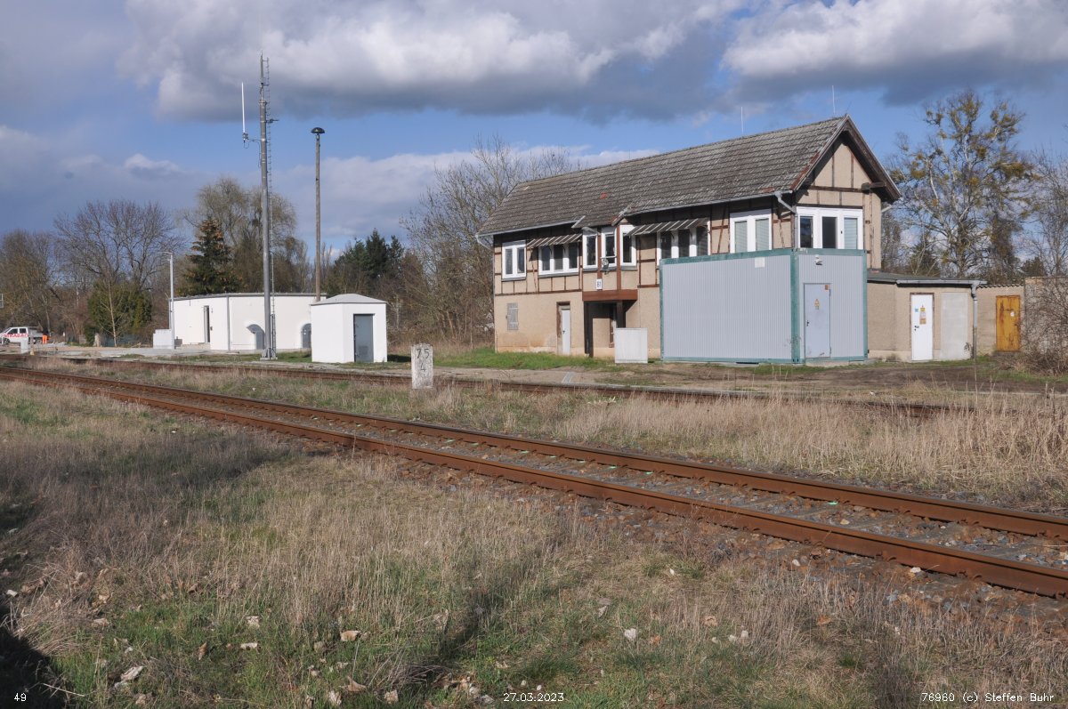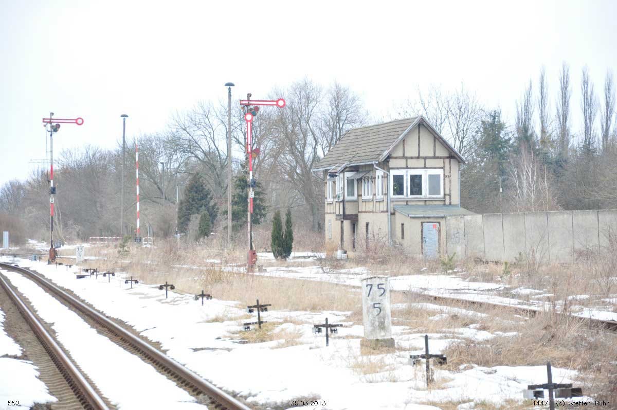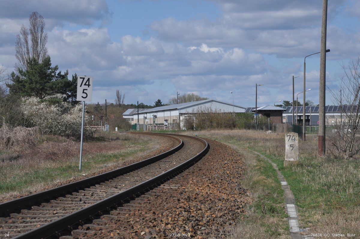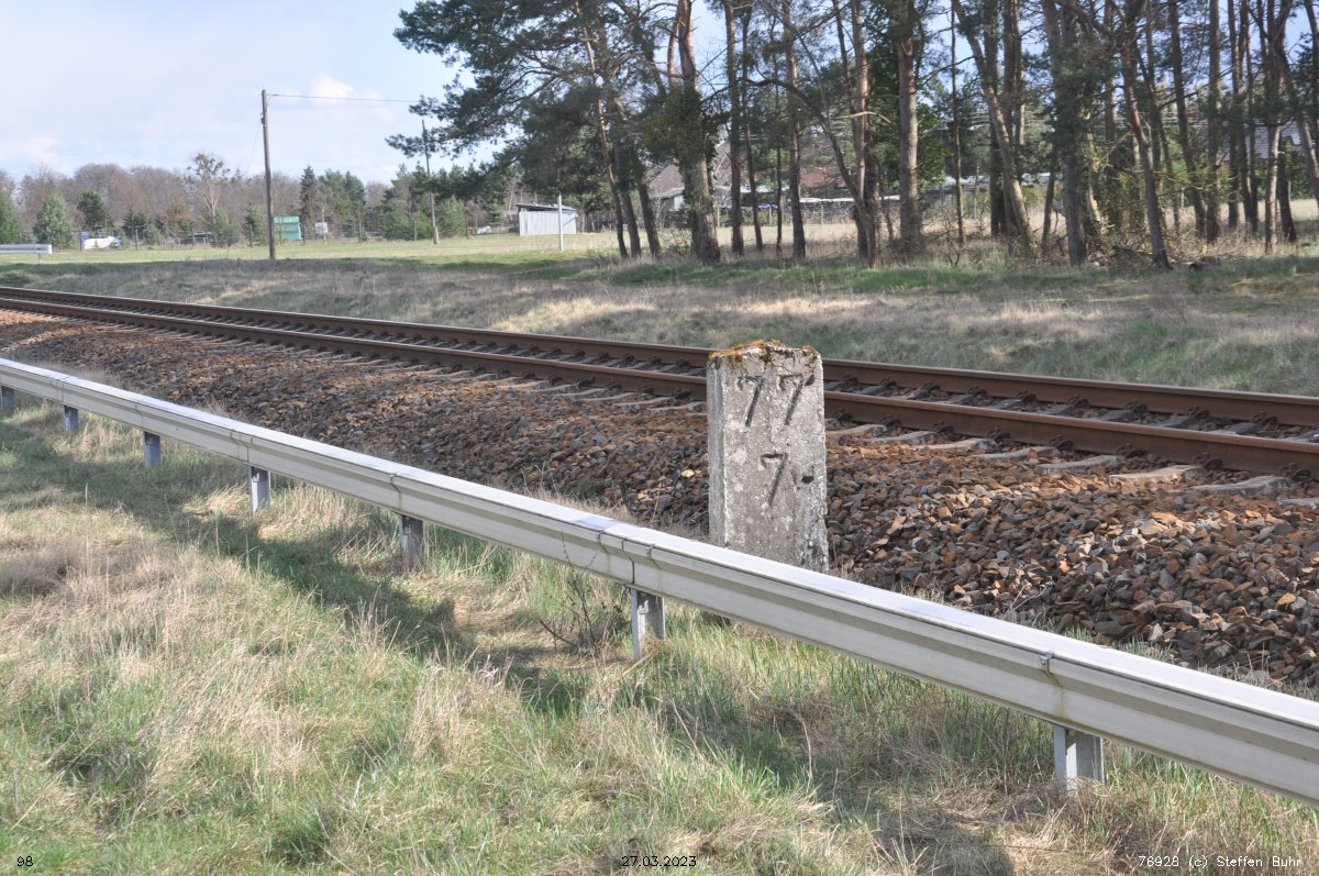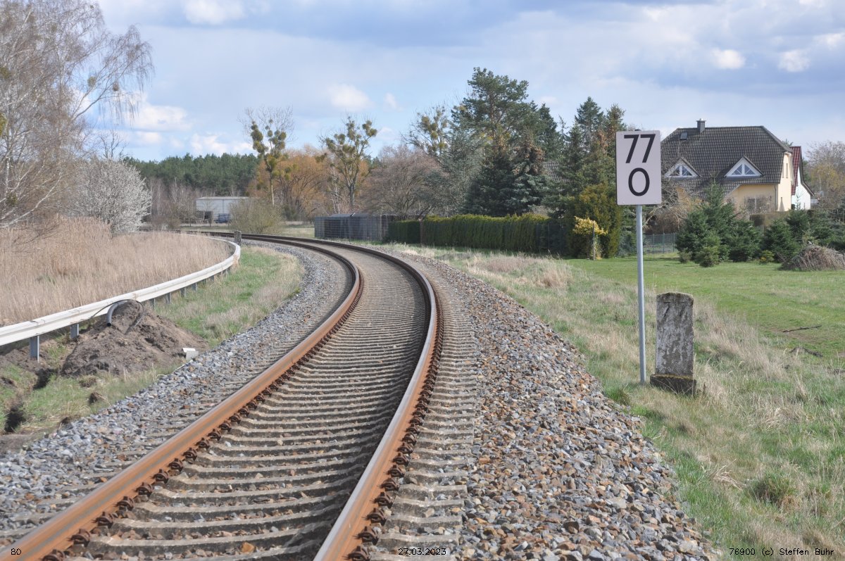 Booßen | 124,98 | km 24,39 der Strecke (Küstrin-Kietz 0,0) - Abzw Wüste Kunersdorf 20,60 - Booßen 24,39 - Frankfurt (Oder) Rbf 27,78 |