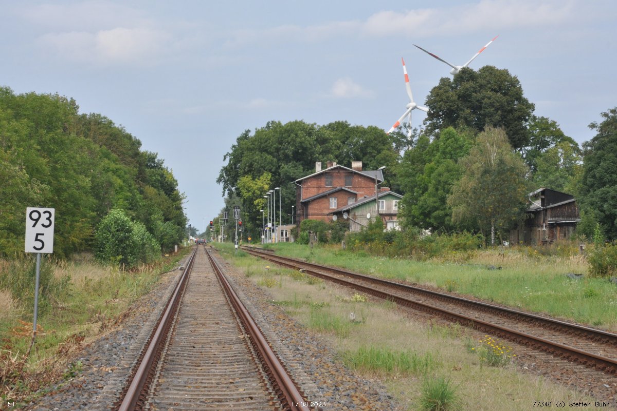 Letschin | 93,21 | Verbindungsbahn über Voßberg Zuckerfabrik zur Strecke Fürstenwalde (Spree) Klb 0,0 - Dolgelin Klb 40,34 - Wriezen Klb 96,3 |