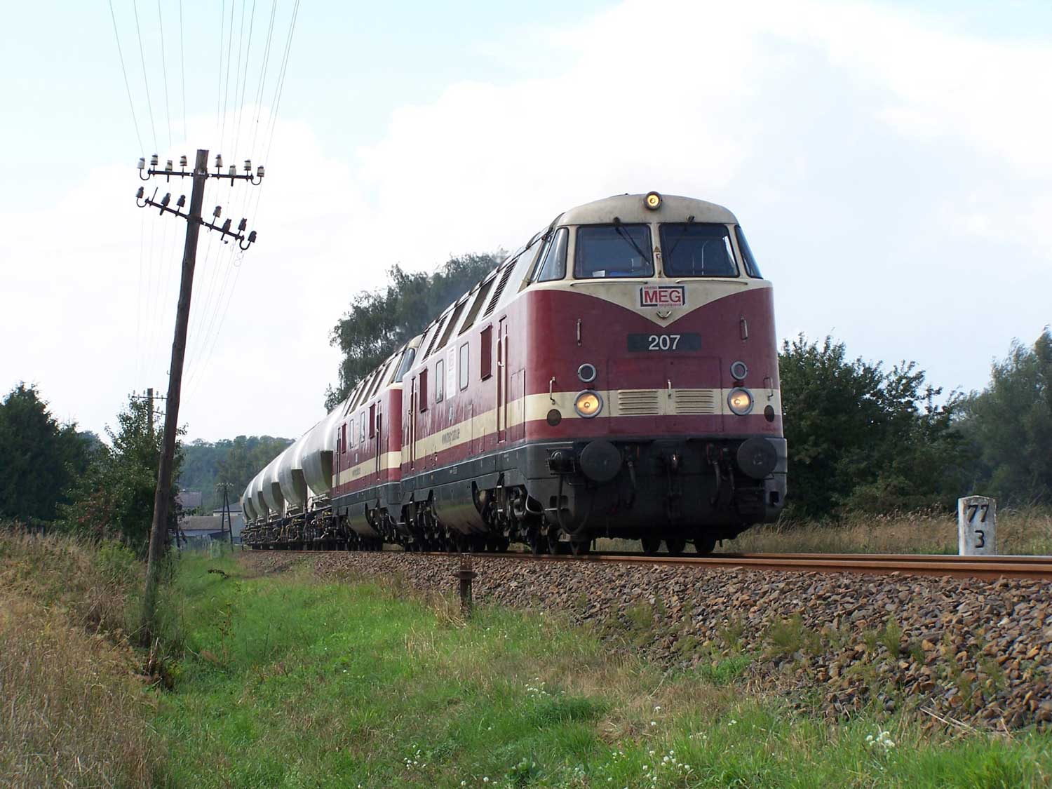 km 70,5 zwischen Altranft und Wriezen - 218 390 (MEG 304) mit DGS 95276 (WM-BRUE)