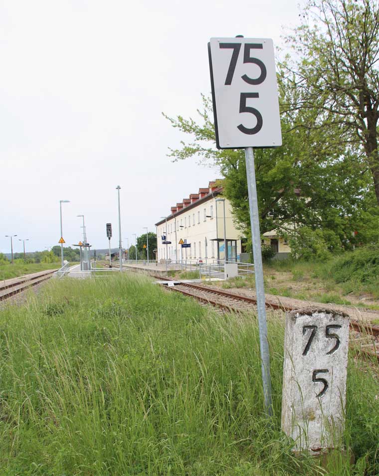 km 152,79 der Strecke Großenhain Cottb. Bf 0,23 - Senftenberg 45,29 - Cottbus 79,67 - Frankfurt (Oder) Pbf 152,85 (Personenzuggleise)/152,79 (Güterzuggleise) | ||