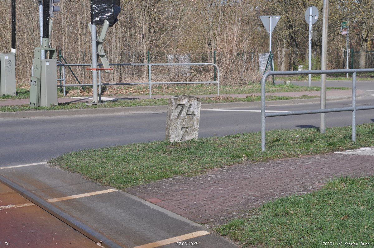 km 70,0 (Tafel und Stein) zwischen Altranft und Wriezen - Detail