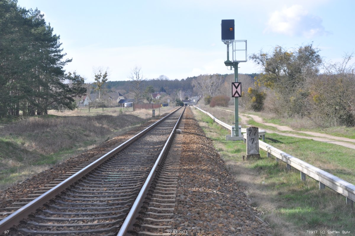 km 96,3 der Strecke Fürstenwalde (Spree) Klb 0,0 - Dolgelin Klb 40,34 - Wriezen Klb 96,3 | ||