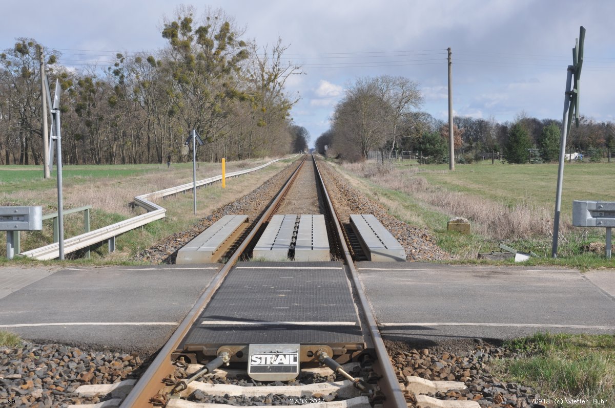 BÜ km 84,1 in Neutrebbin - Blick Richtung Frankfurt (Oder)