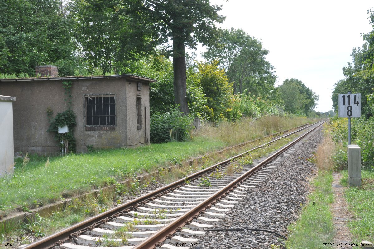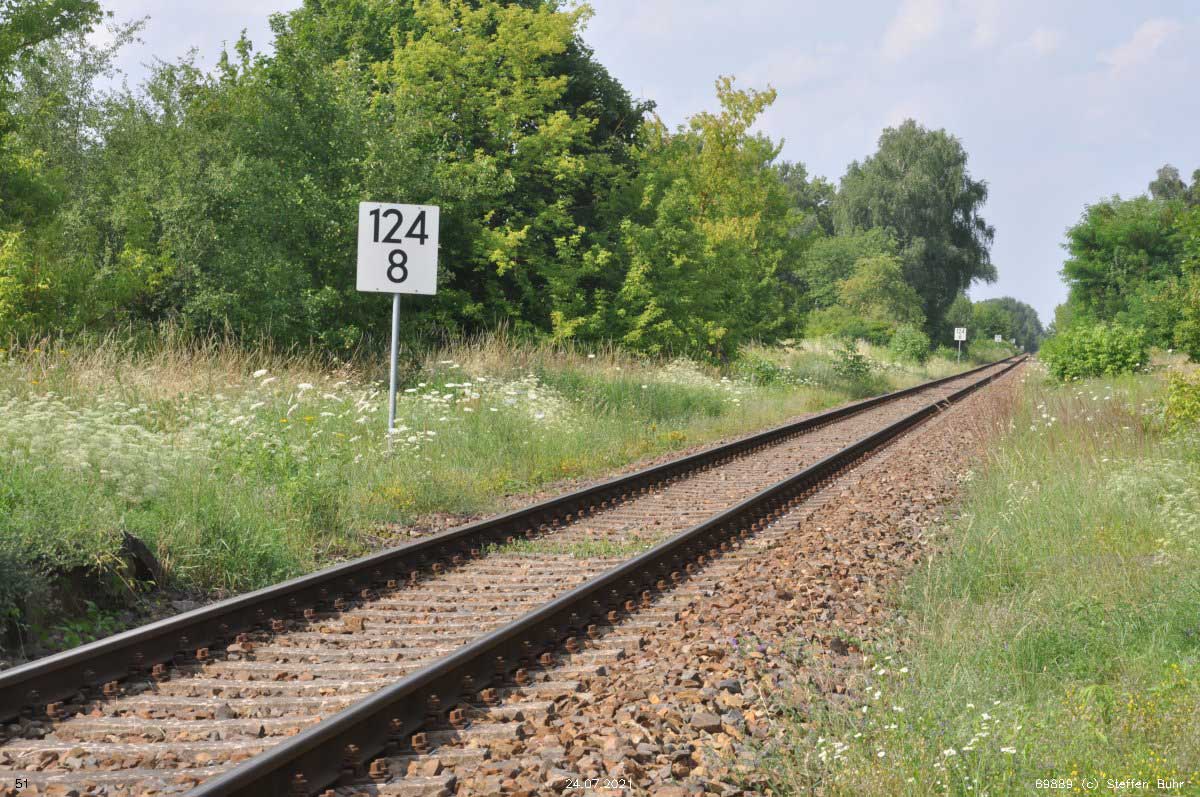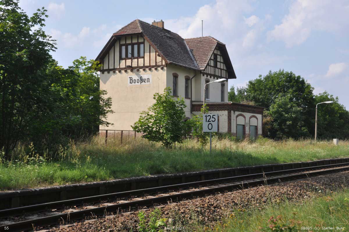 Booßen | 124,98 | km 24,39 der Strecke (Küstrin-Kietz 0,0) - Abzw Wüste Kunersdorf 20,60 - Booßen 24,39 - Frankfurt (Oder) Rbf 27,78 |