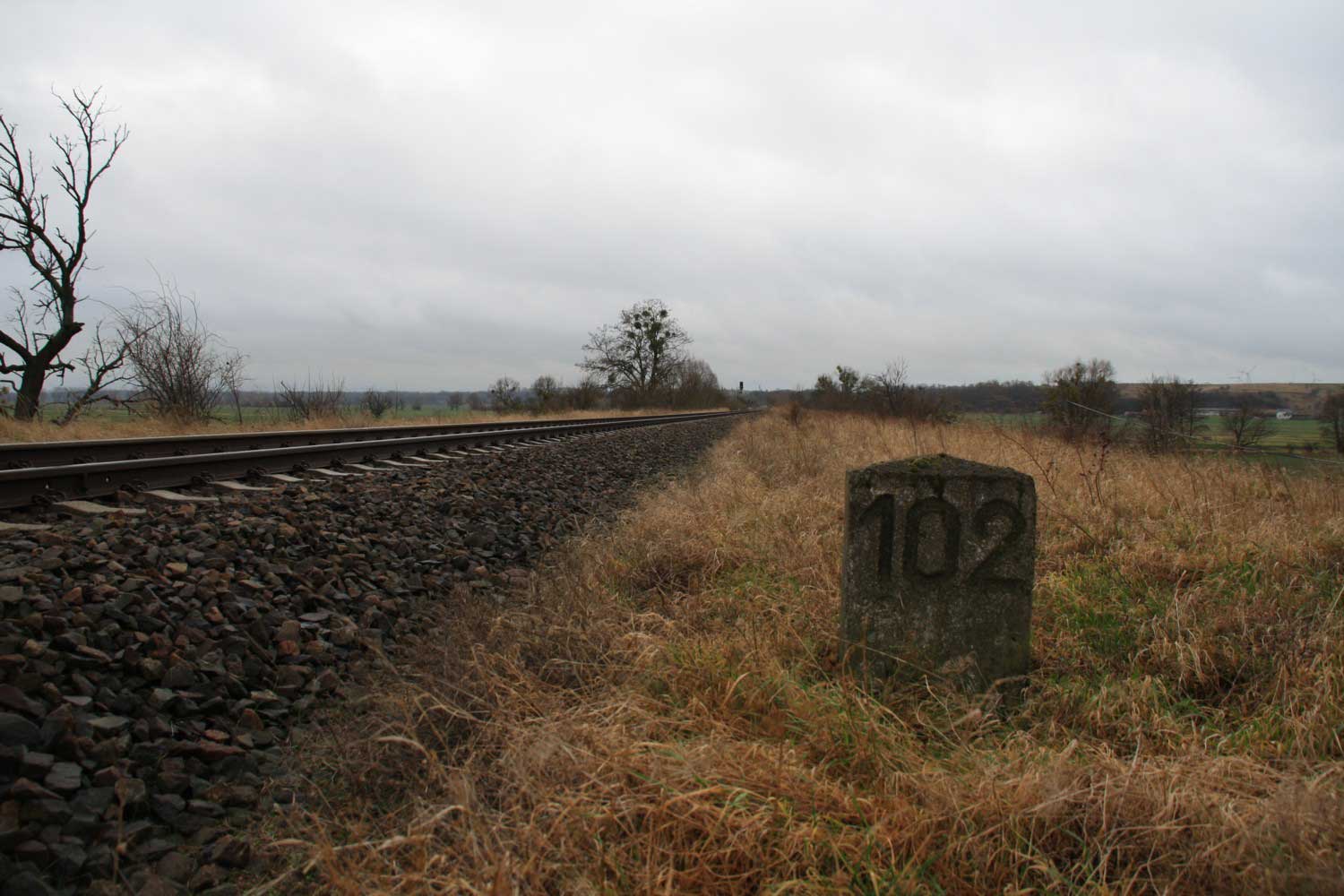 km 127,7 (Stein und Tafel) zwischen Booßen und Frankfurt (Oder) - Blick Richtung Eberswalde
