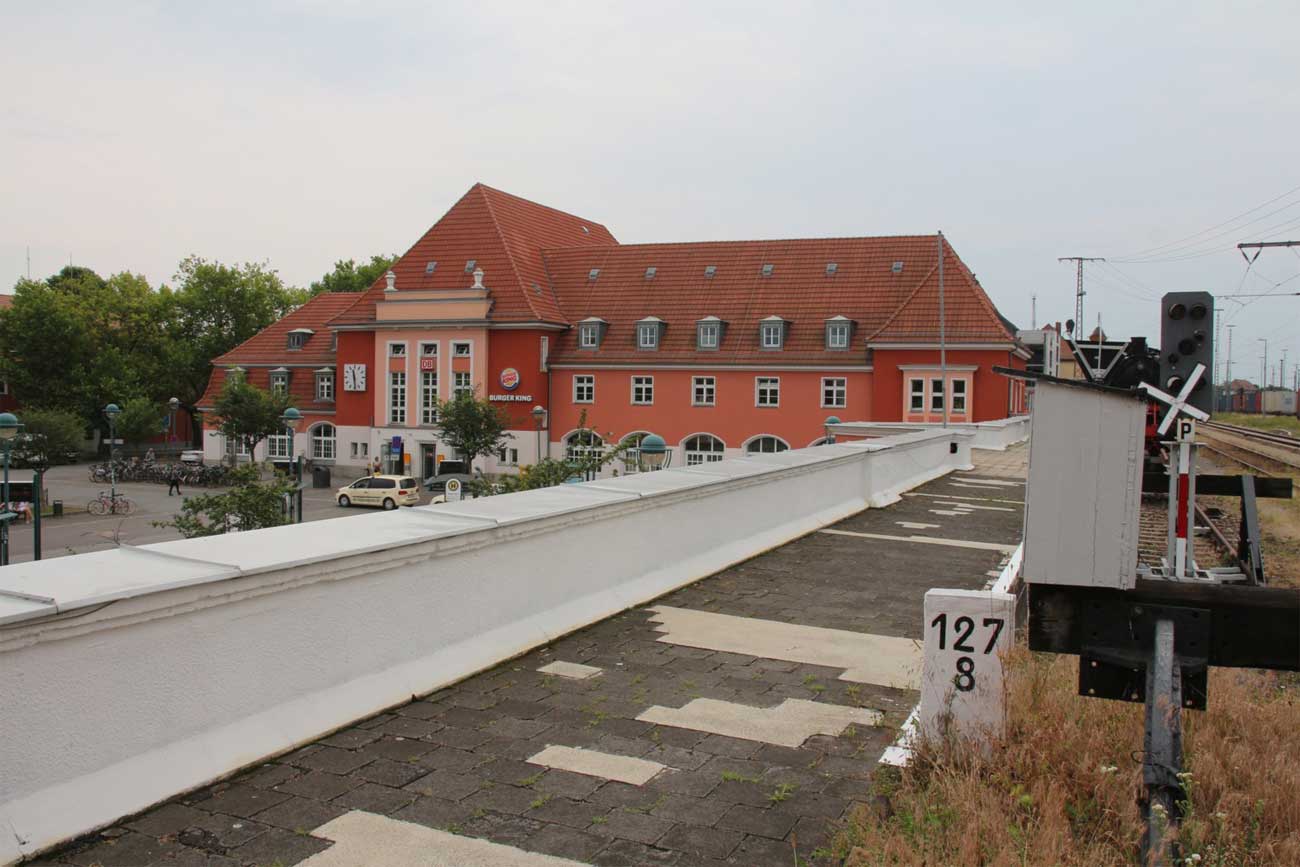 km 0,0 der Strecke Frankfurt (Oder) Pbf 0,0 - Reppen 21,22 - Neubentschen 96,38 - Posen Hbf 177,2 [heute: km 0,0 der Strecke Frankfurt (Oder) Pbf - Frankfurt (Oder) Grenze] | ||
