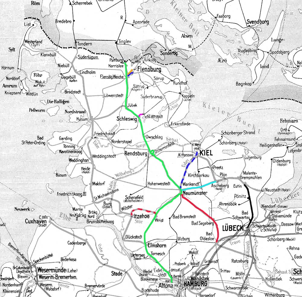 ───── Hamburg-Altona - Elmshorn - Wrist - Neumünster - Schleswig - Jübek - Flensburg-Weiche - Staatsgrenze - (Padborg)