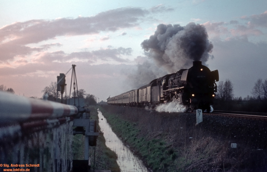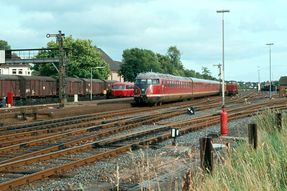 Itzehoe 73,58 km 34,17 der Strecke Elmshorn 0,07 - Heide (Holst) 88,03 - Husum 121,84 - Lindholm 157,62 - Staatsgrenze km 175,26 = (km 67,9 - Tondern 63,3 - Esbjerg) Strecke 1981 neu kilometriert, siehe Strecke 30
