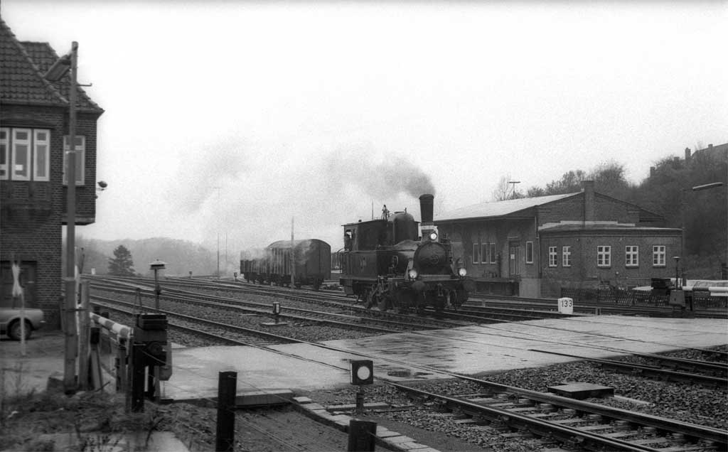 Husum 26,29 km 121,84 der Strecke Elmshorn 0,07 - Heide (Holst) 88,03 - Husum 121,84 - Lindholm 157,62 - Staatsgrenze km 175,26 = (km 67,9 - Tondern 63,3 - Esbjerg)