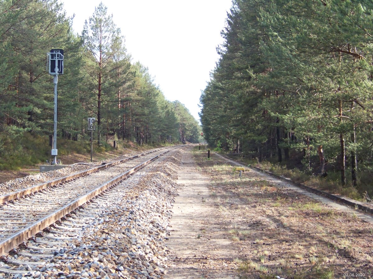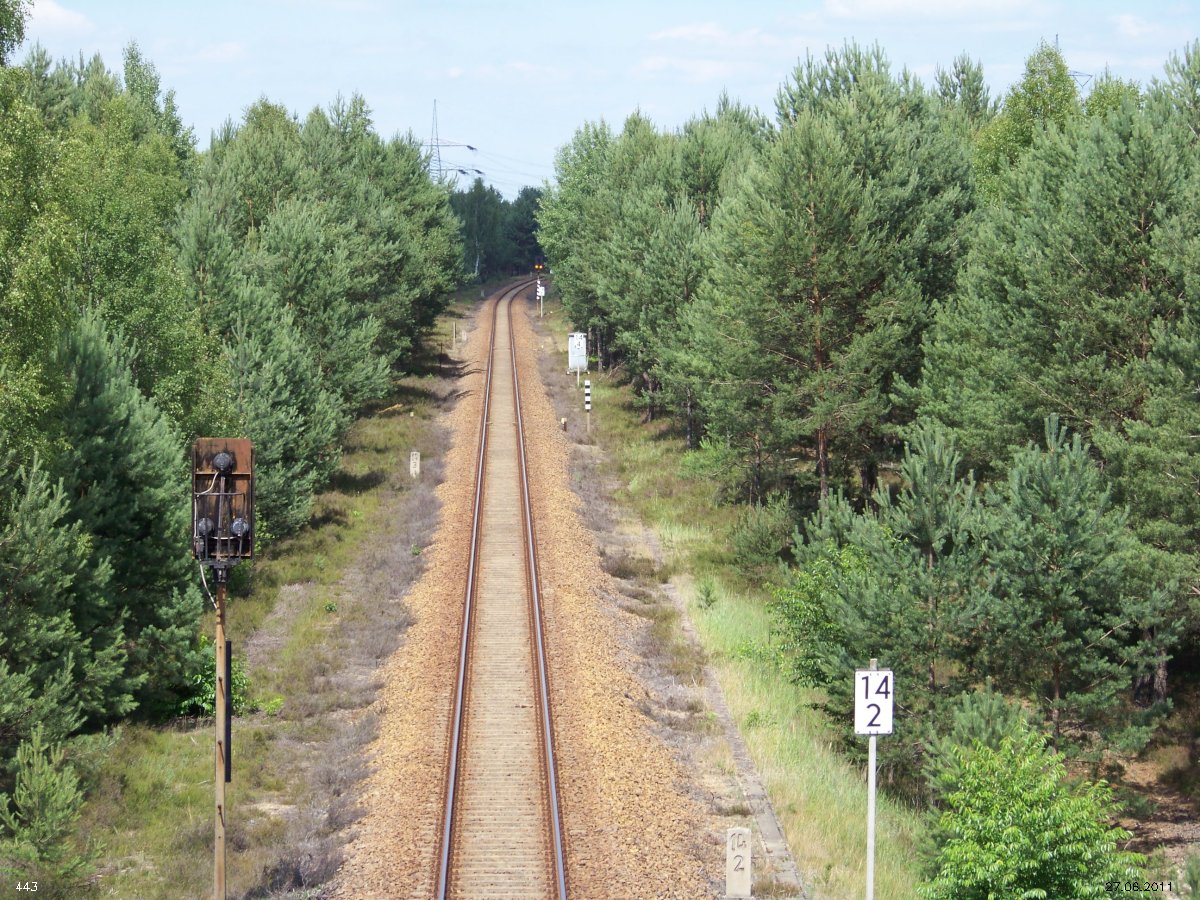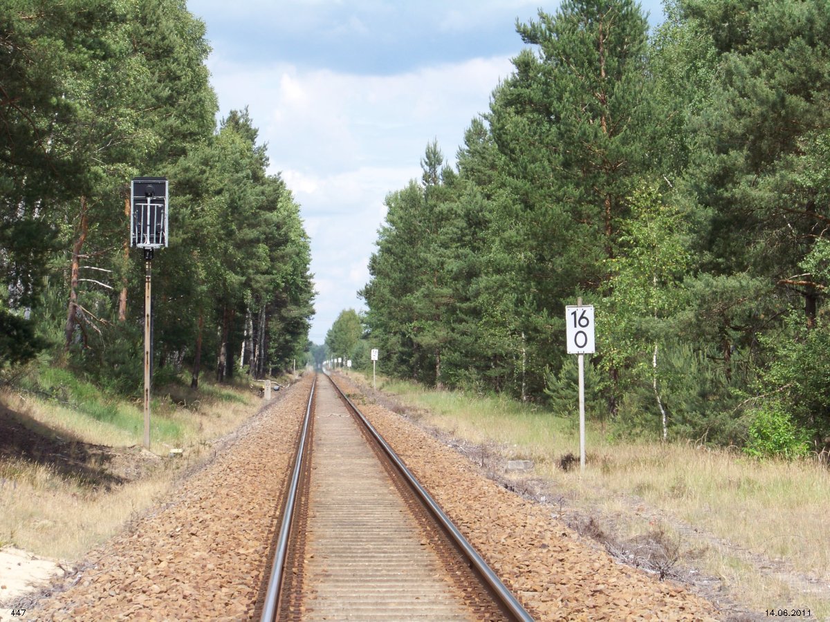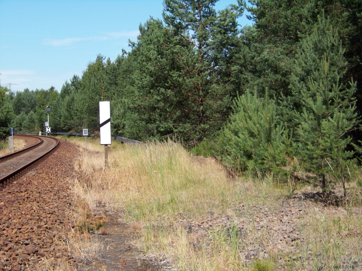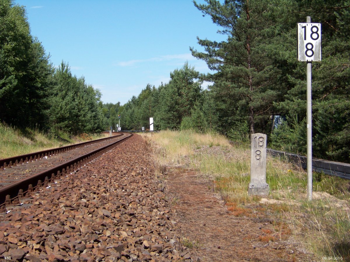 km 53,00 der Strecke Großenhain Cottb. Bf 0,0 - Senftenberg 45,29 - Cottbus 80,00 - Peitz 94,81 - Streckenunterbrechung - Grunow (Niederlausitz) 129,27 - Frankfurt (Oder) 152,78