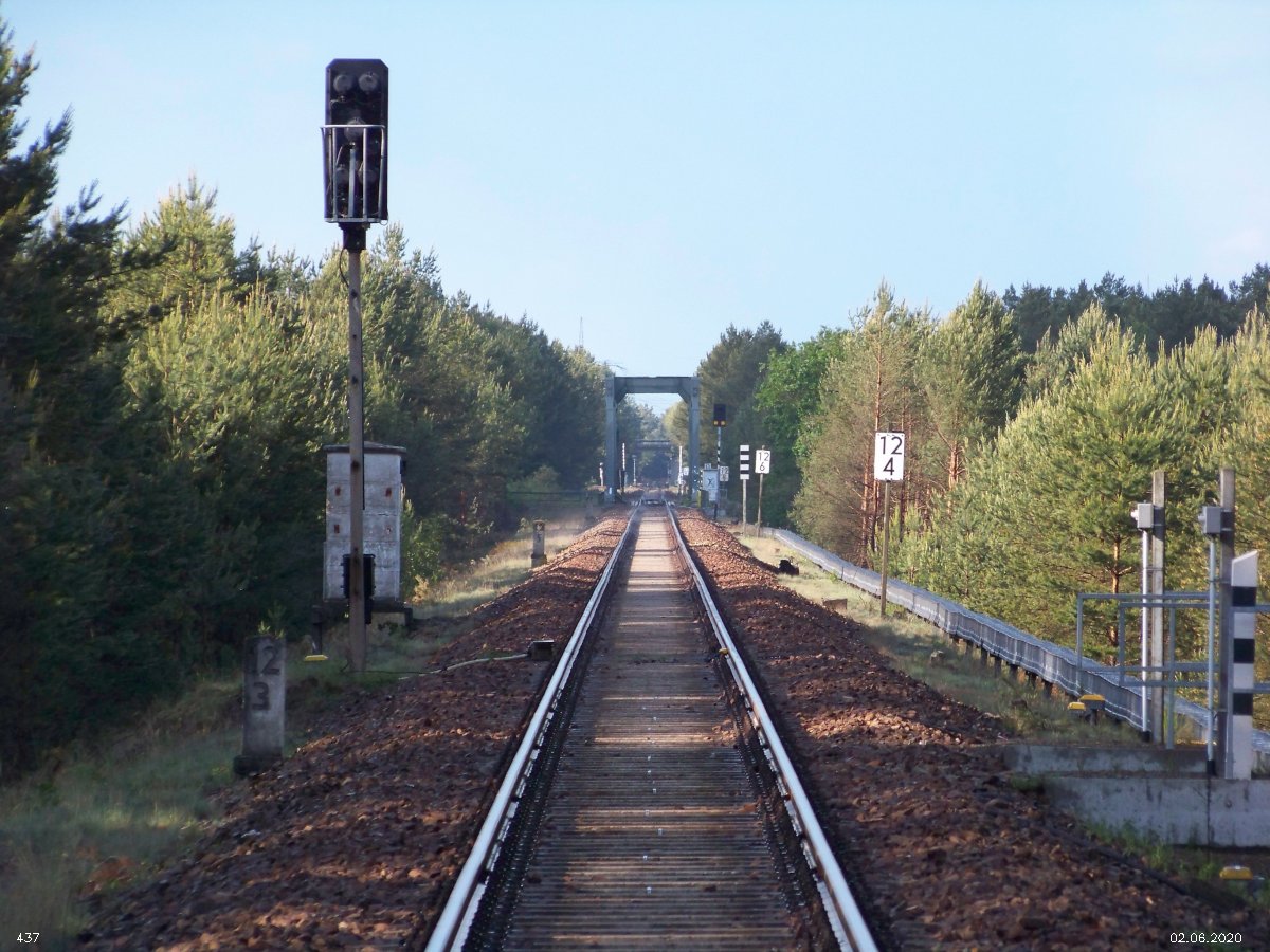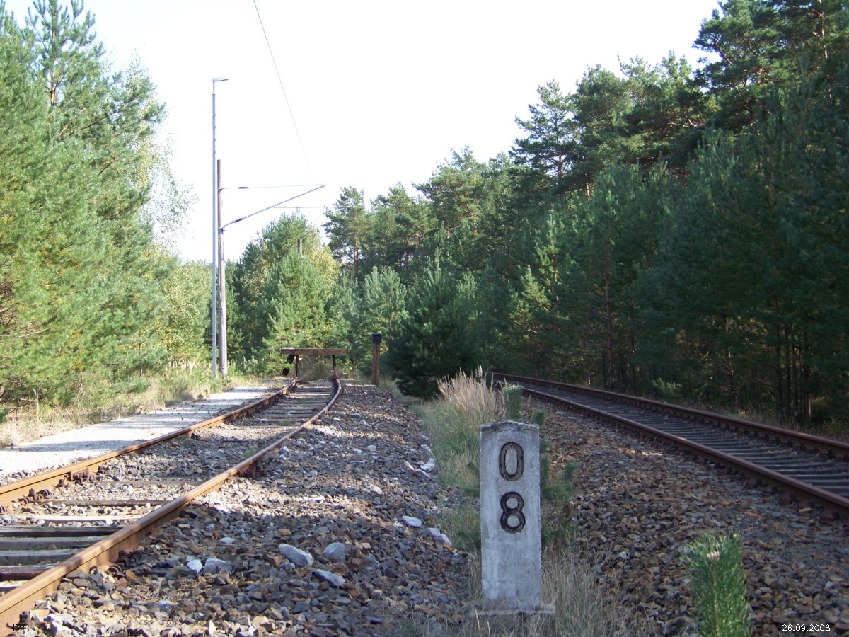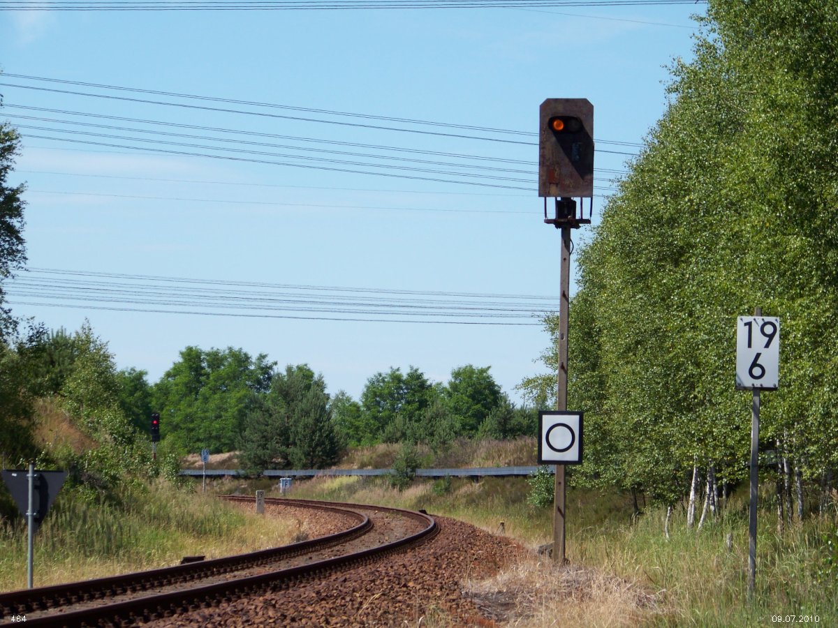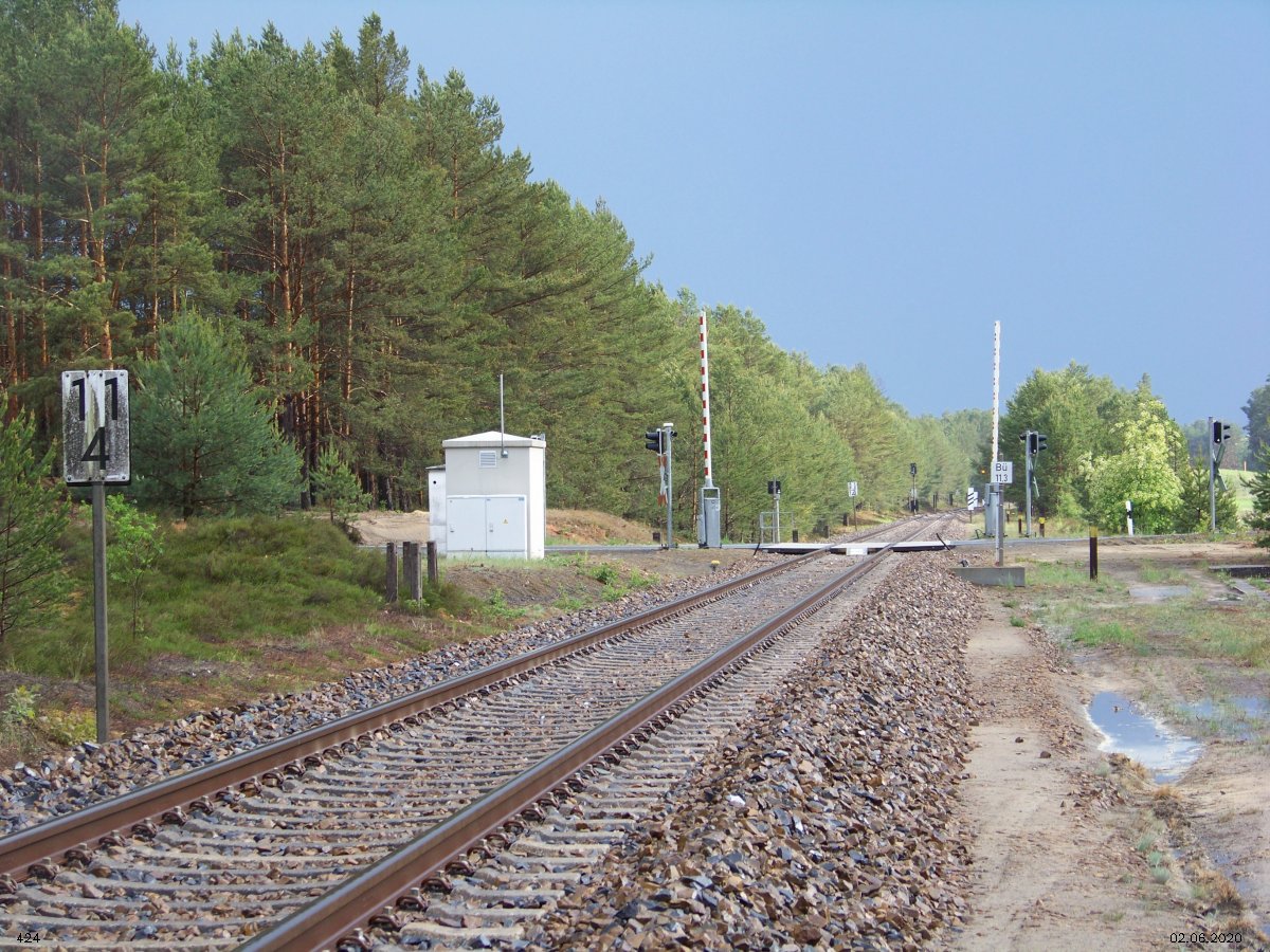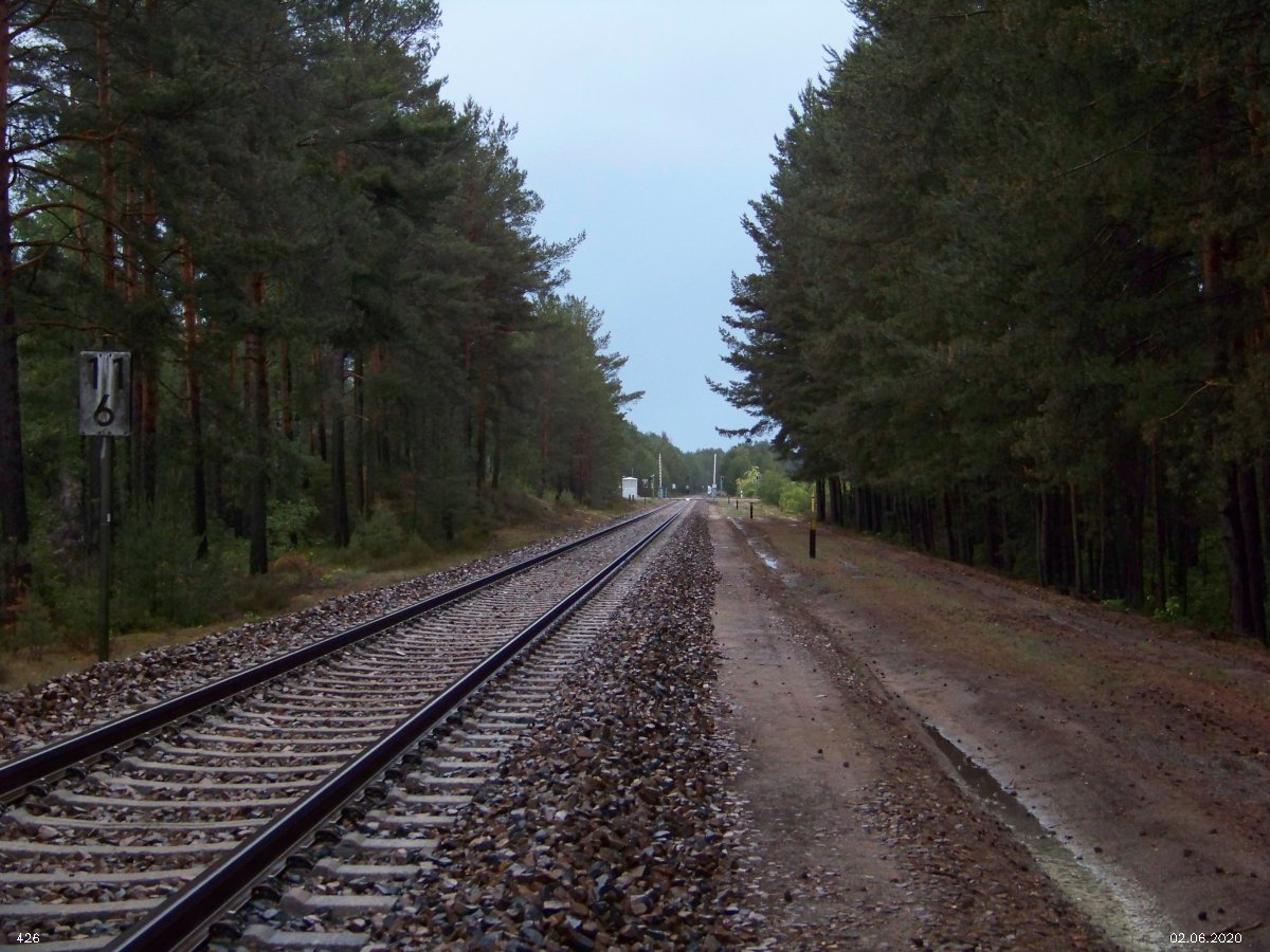 km 53,00 der Strecke Großenhain Cottb. Bf 0,0 - Senftenberg 45,29 - Cottbus 80,00 - Peitz 94,81 - Streckenunterbrechung - Grunow (Niederlausitz) 129,27 - Frankfurt (Oder) 152,78