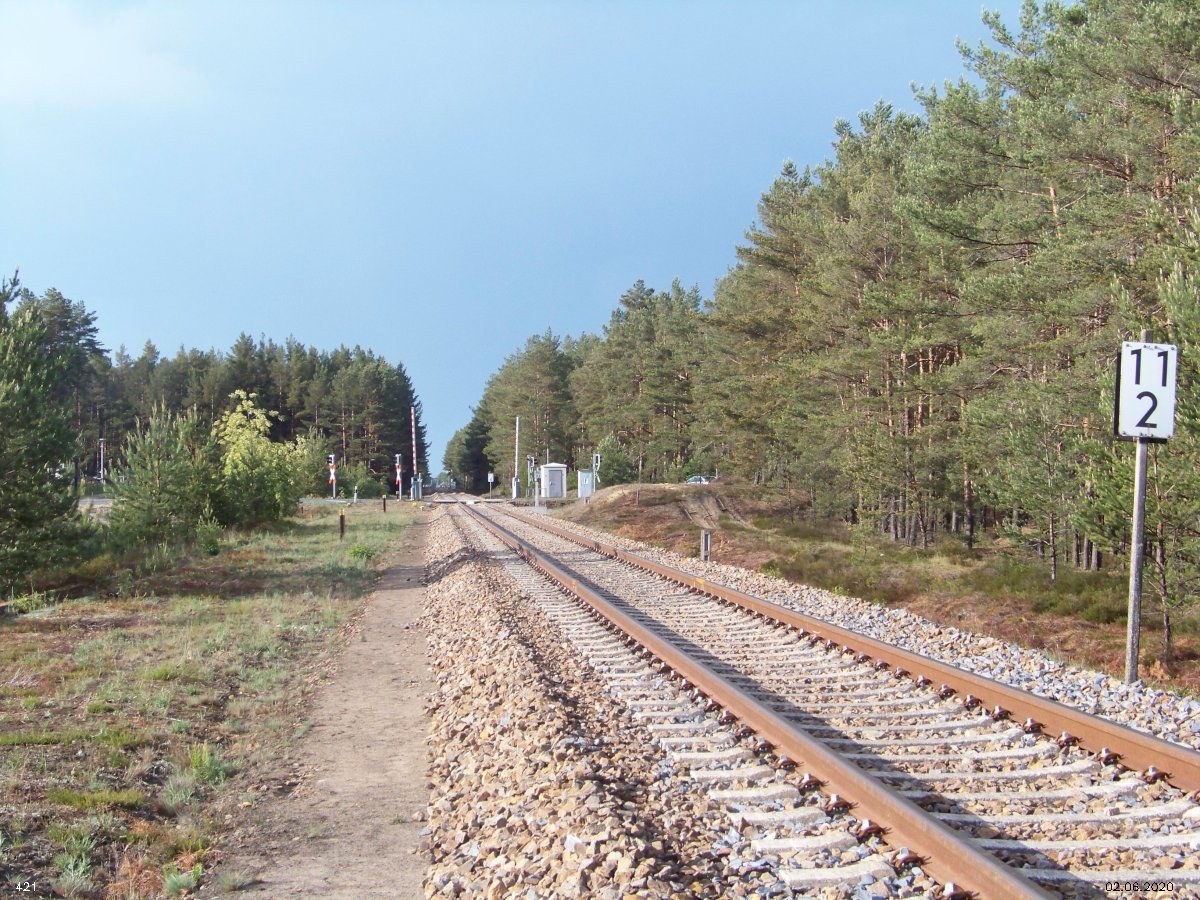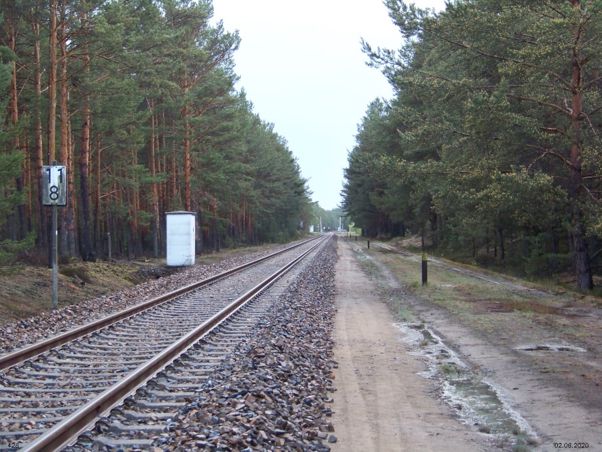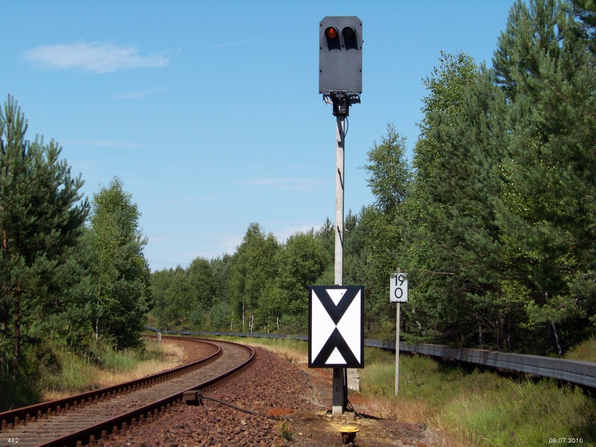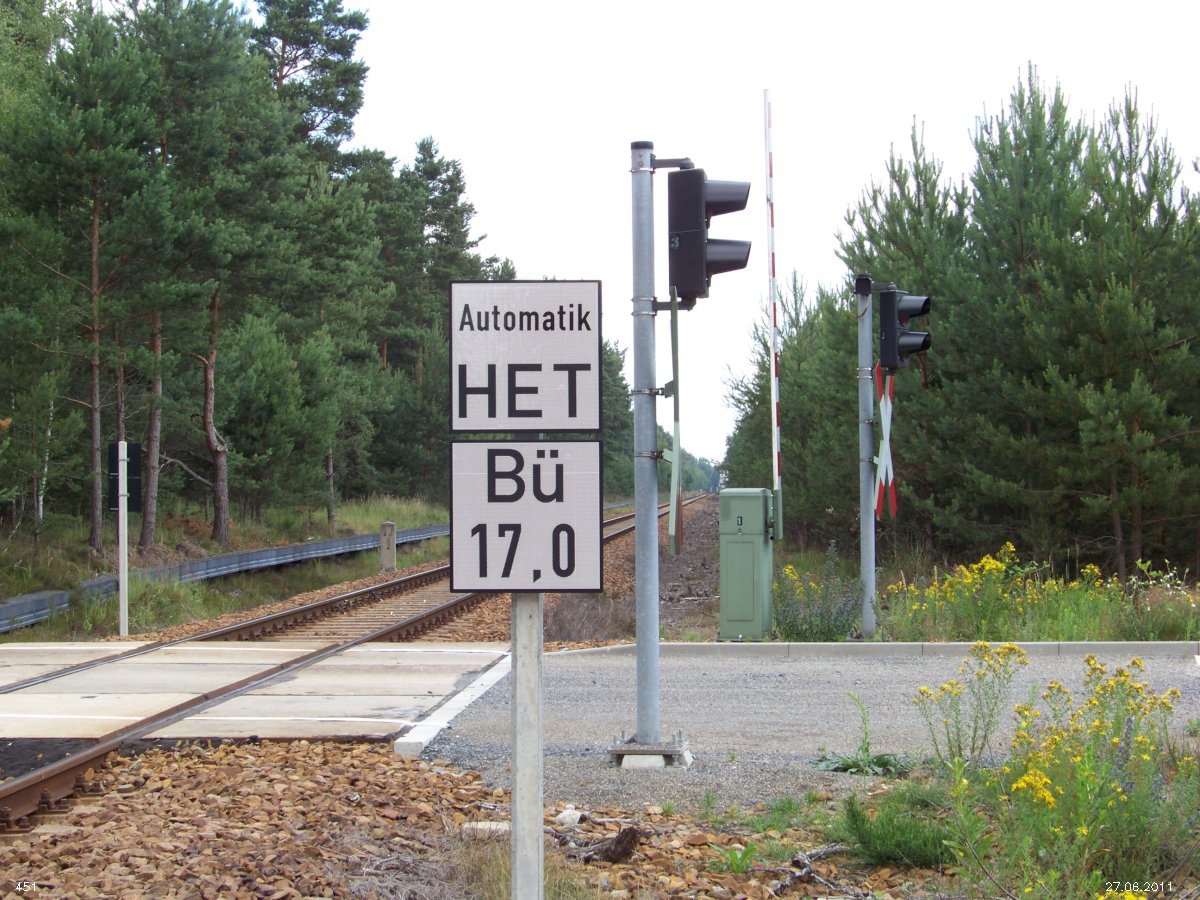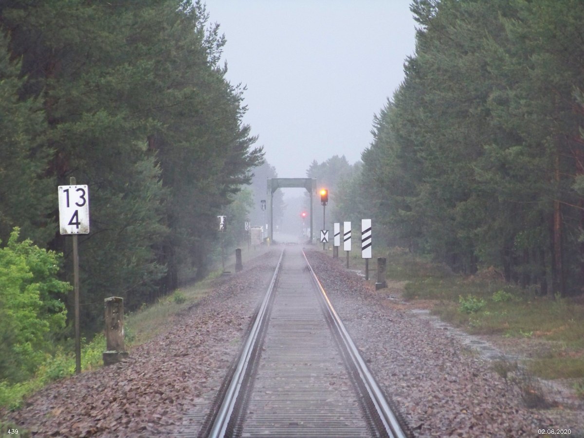 km 53,00 der Strecke Großenhain Cottb. Bf 0,0 - Senftenberg 45,29 - Cottbus 80,00 - Peitz 94,81 - Streckenunterbrechung - Grunow (Niederlausitz) 129,27 - Frankfurt (Oder) 152,78