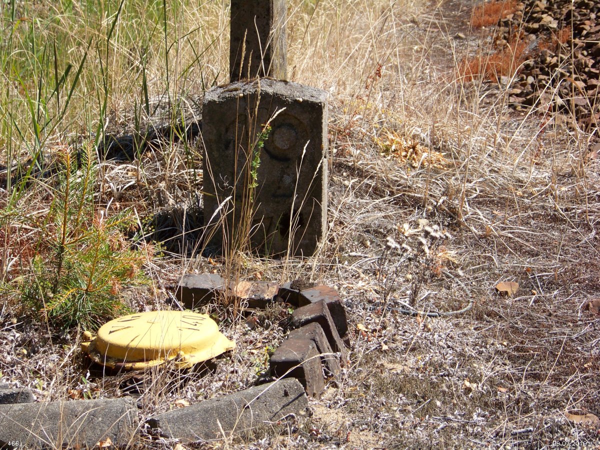 km 9,67 der abgehenden Strecke (Knappenrode 0,0) - Abzw Spreewitz Süd 9,67 - Graustein 20,27 mit weiterlaufender Kilometrierung (Streckenverzweigung mit gemeinsamen Nullpunkt Knappenrode)