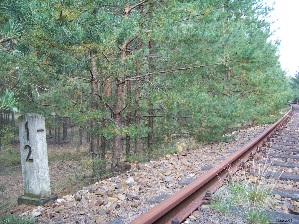 Kilometerstein bei Abzw Sornoer Buden Nord (früher Abzw Bahnsdorf) kurz vor der Einmündung in die Strecke