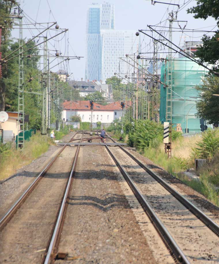 km 31,8 in Frankfurt am Main Stadion [früher: Frankfurt (Main)-Sportfeld] - Blick Richtung Frankfurt (Main) Süd