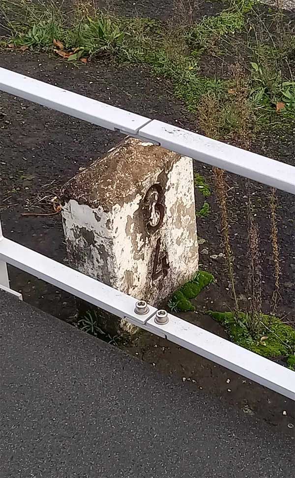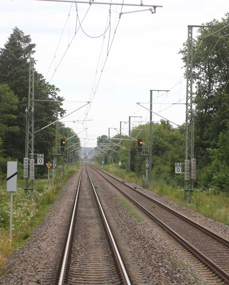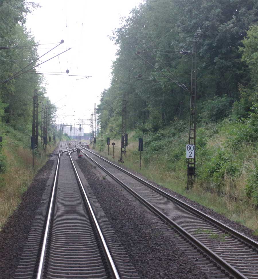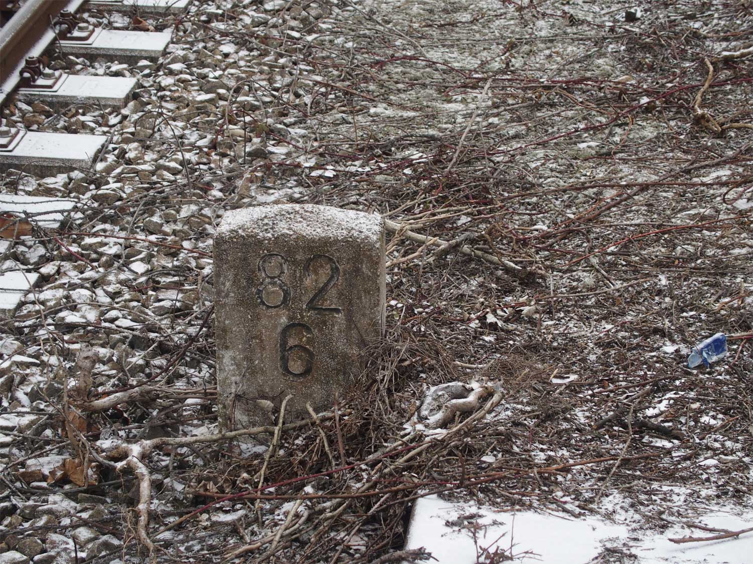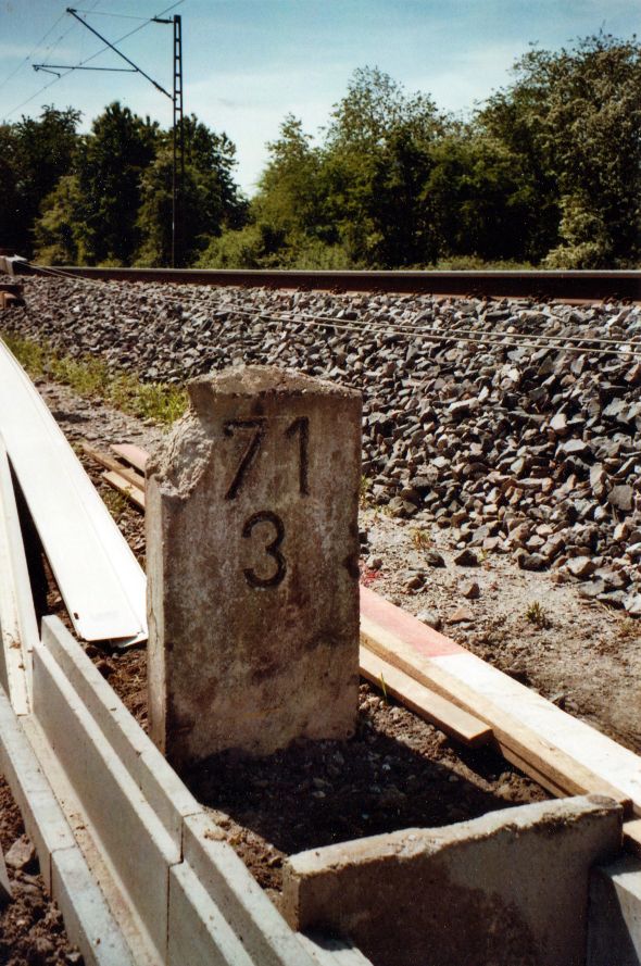 km 96,0 (Tafel) und km 96,2 (Stein) gehören zur Strecke