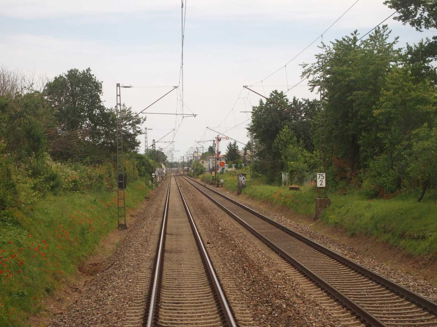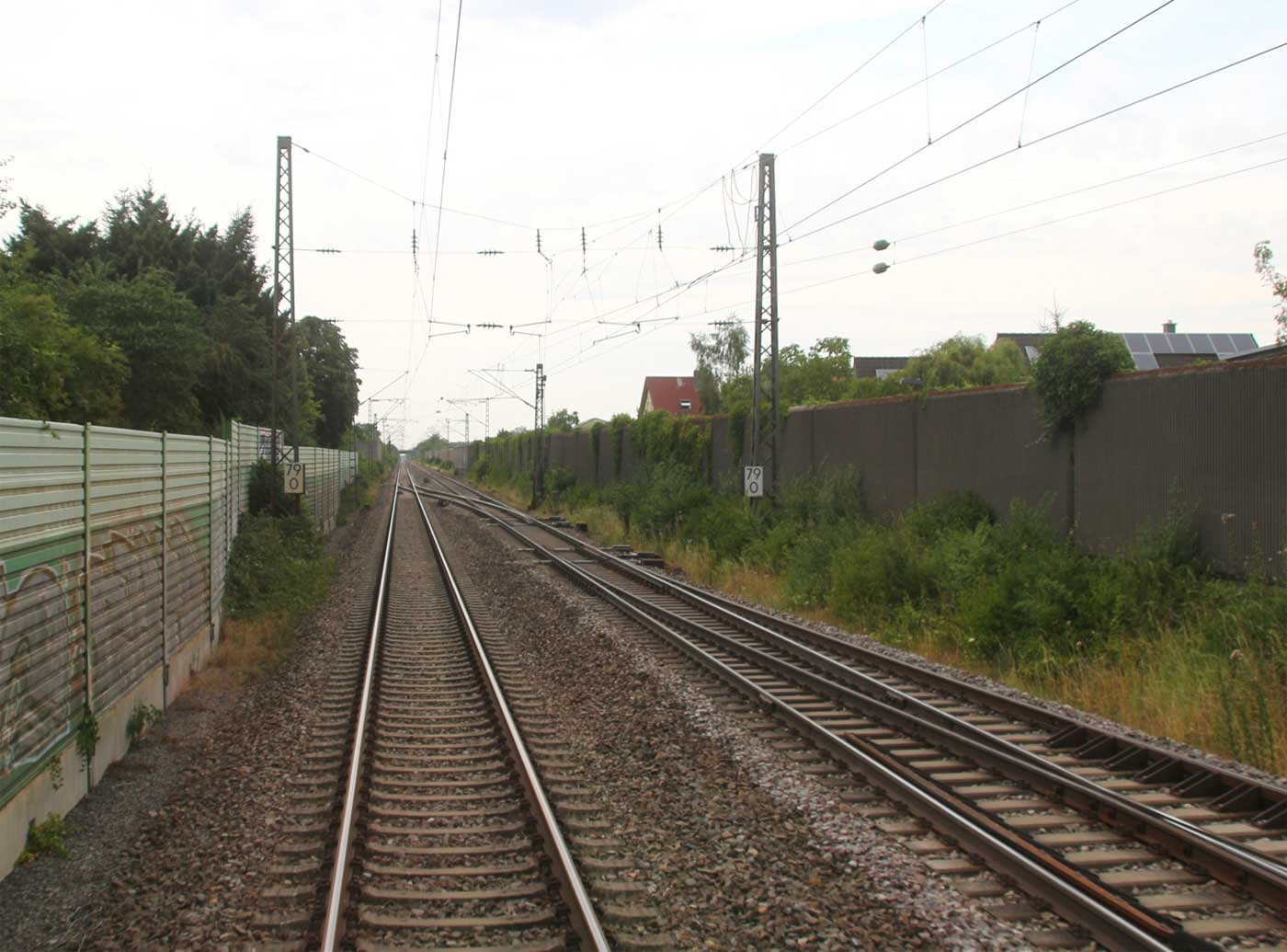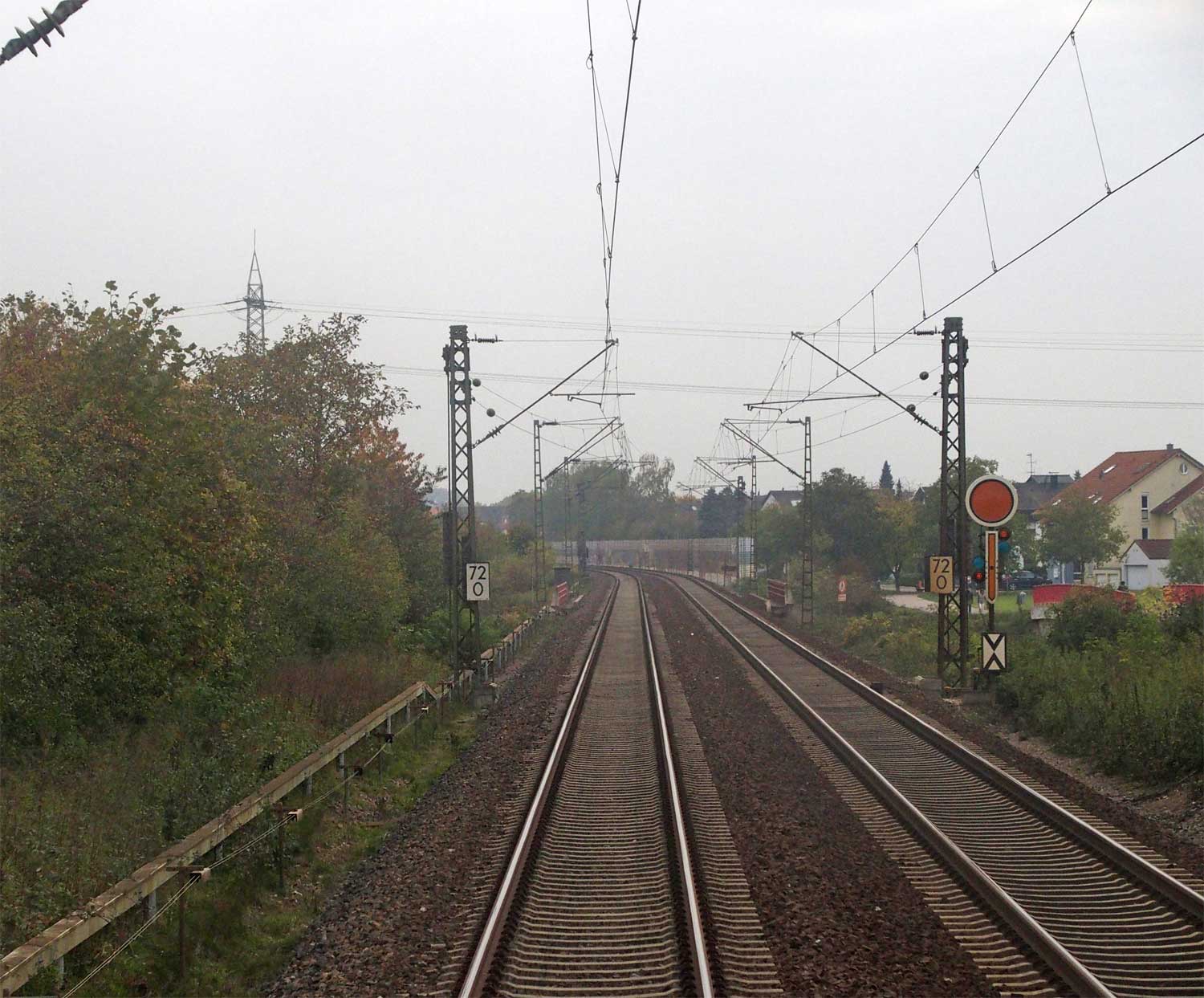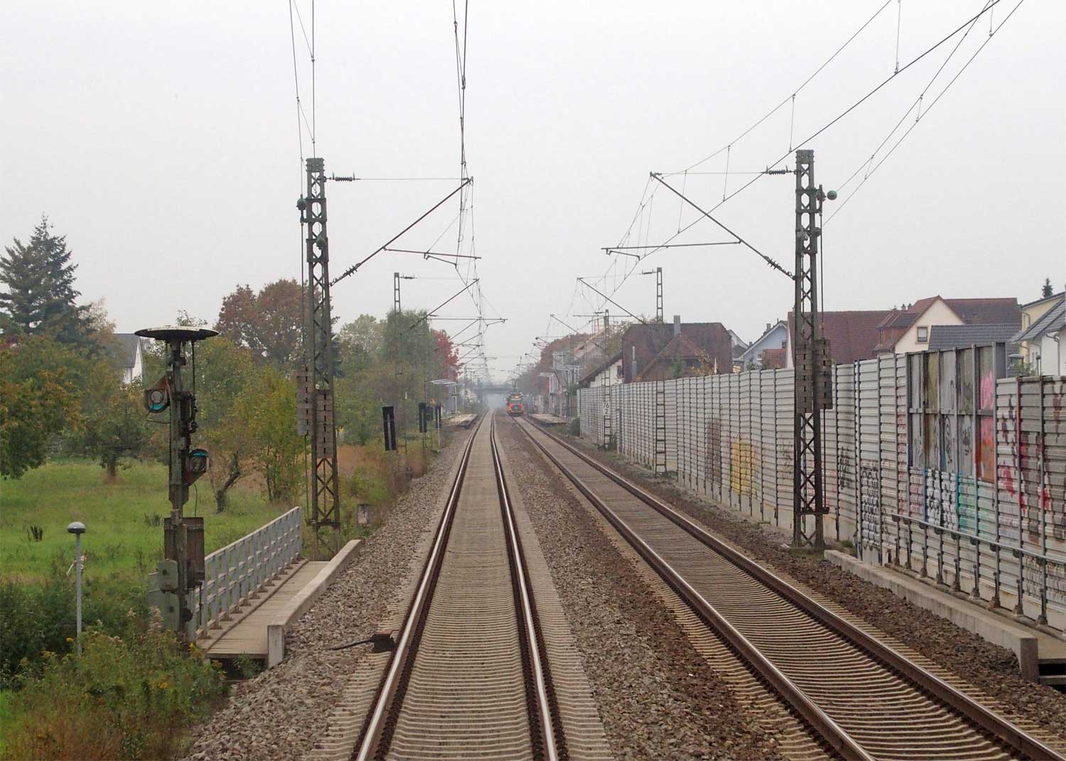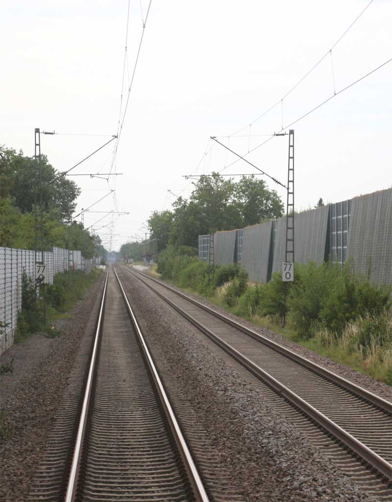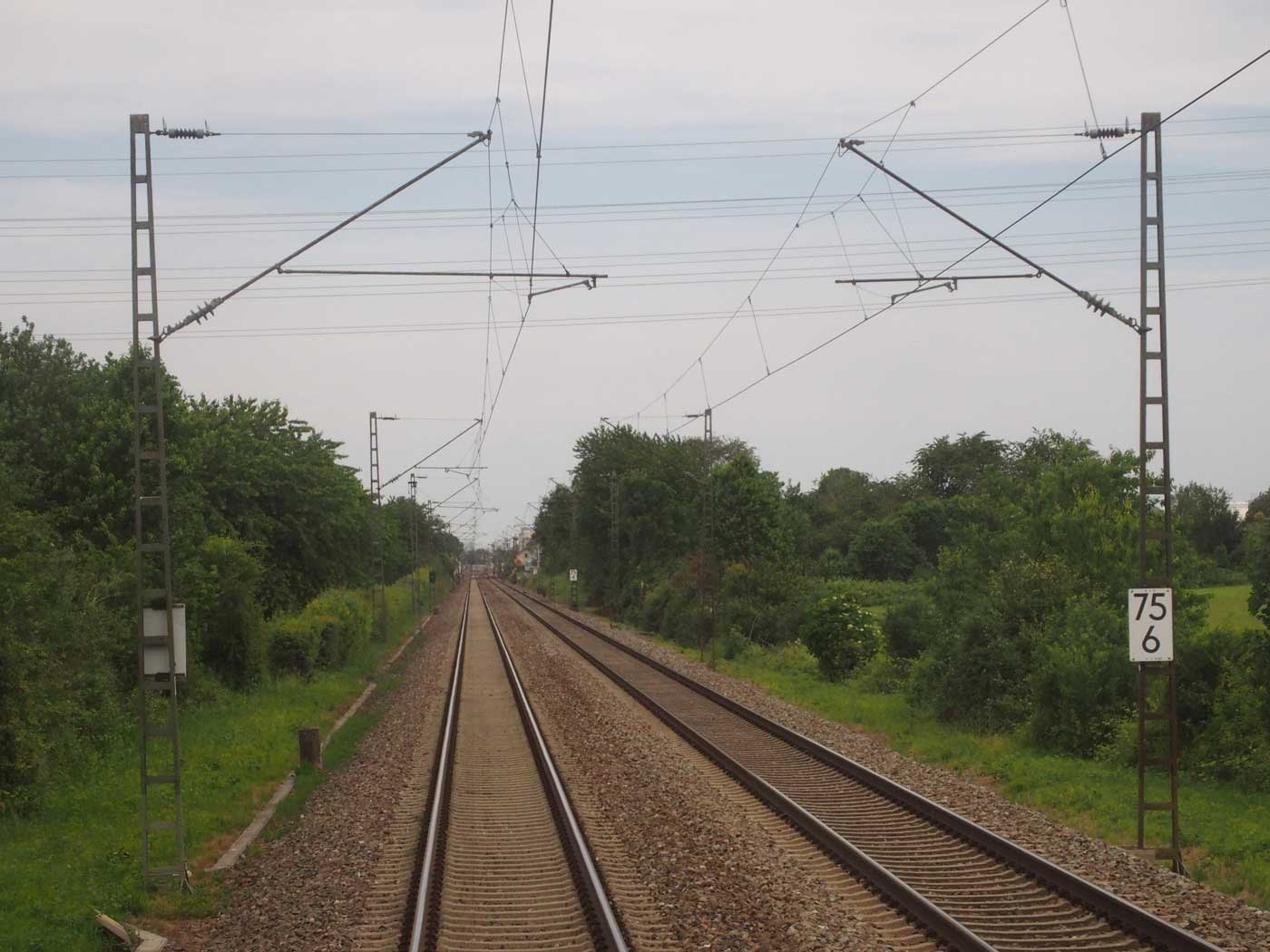 bei km 82,4 (links) in Rastatt - Blick Richtung Mannheim