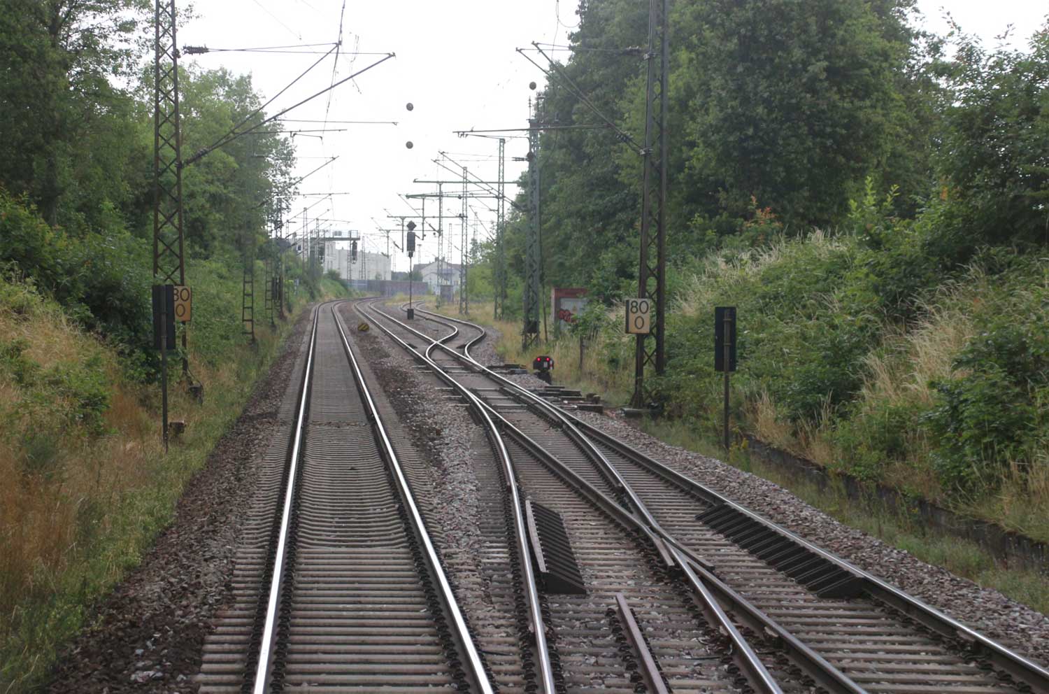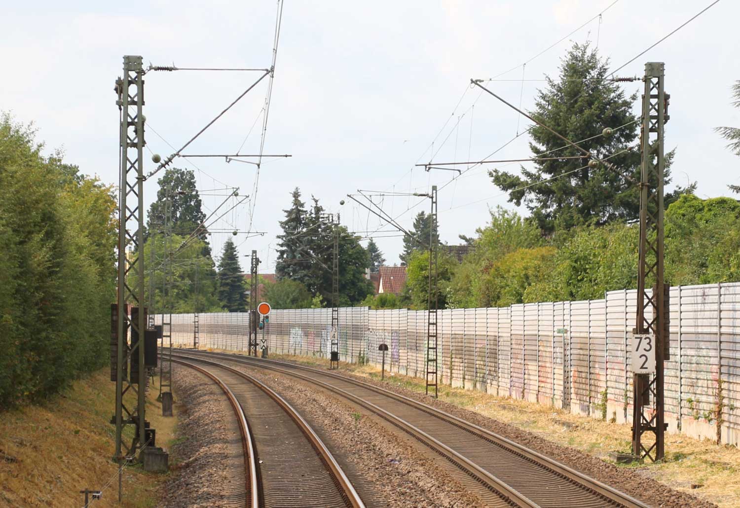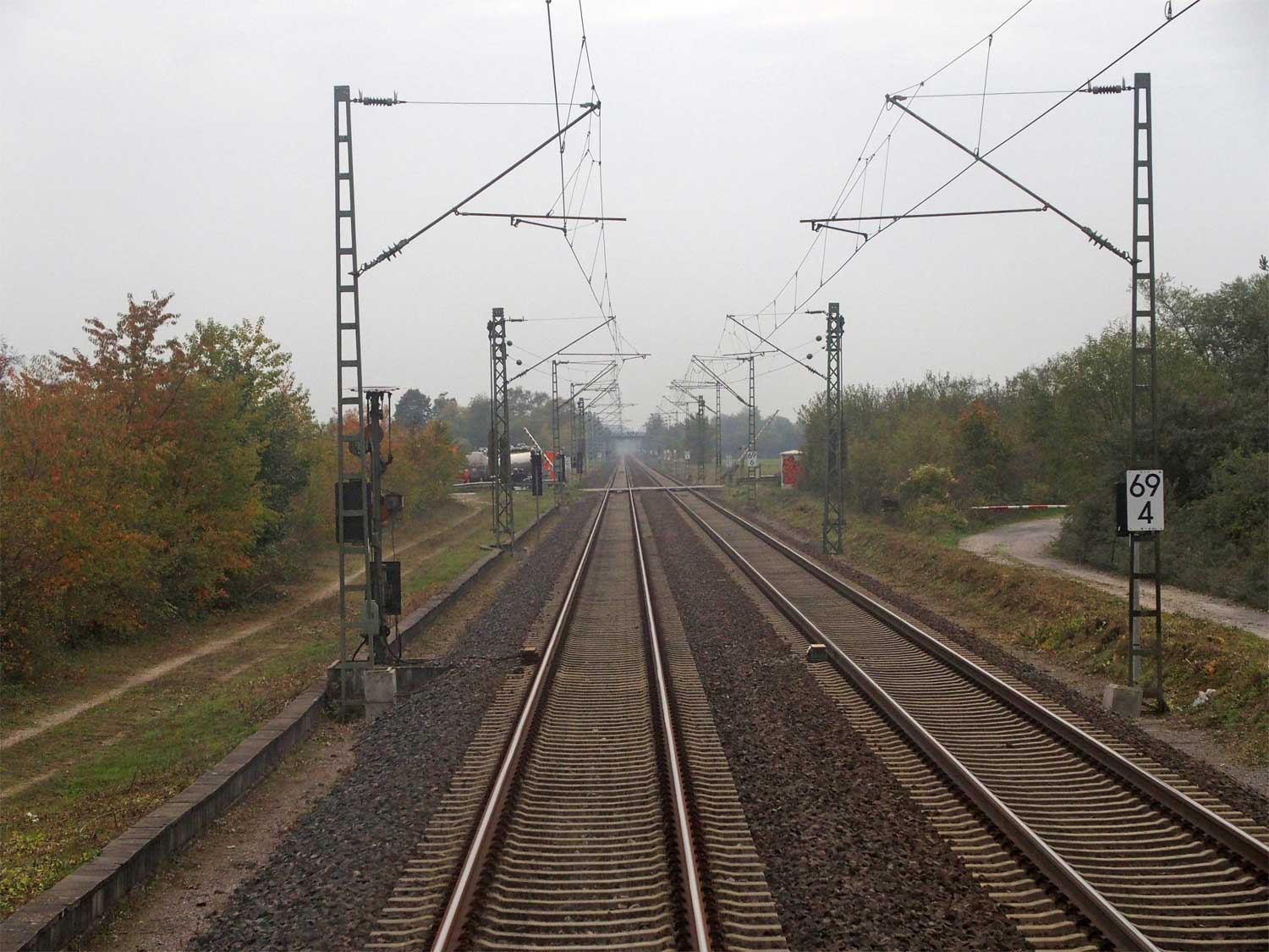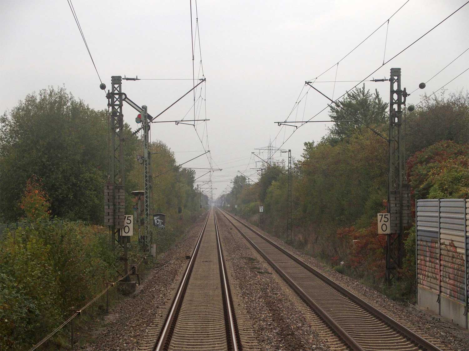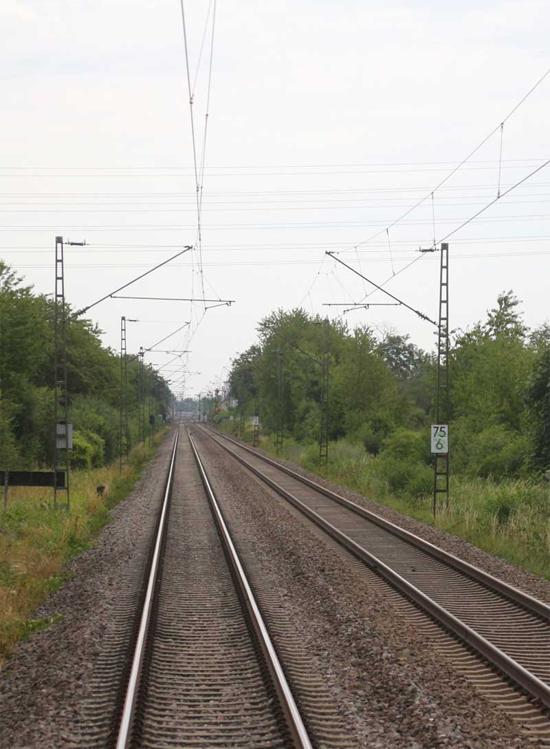 bei km 82,4 (links) in Rastatt - Blick Richtung Mannheim