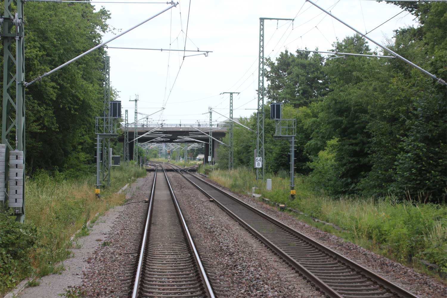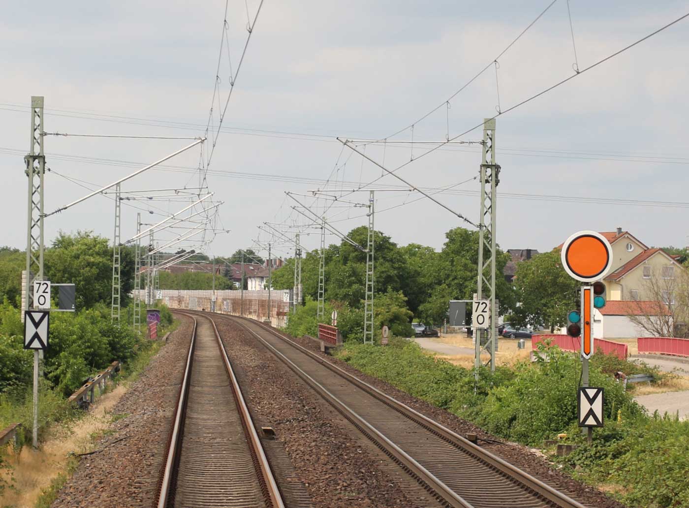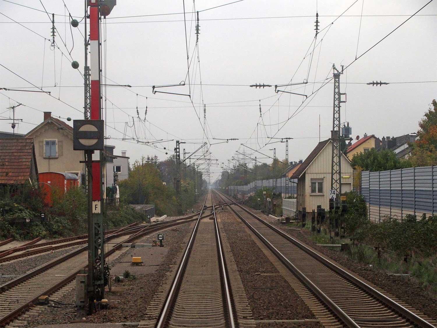 km 82,4 und km 82,6 in Rastatt - Blick Richtung Mannheim