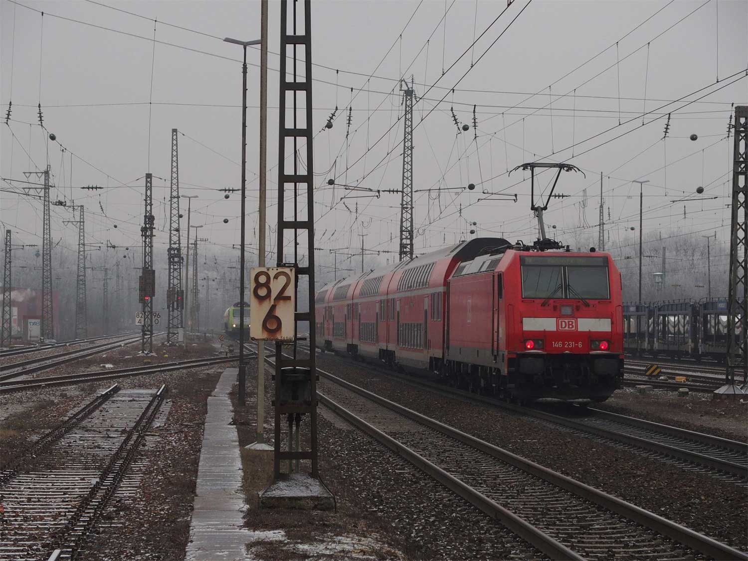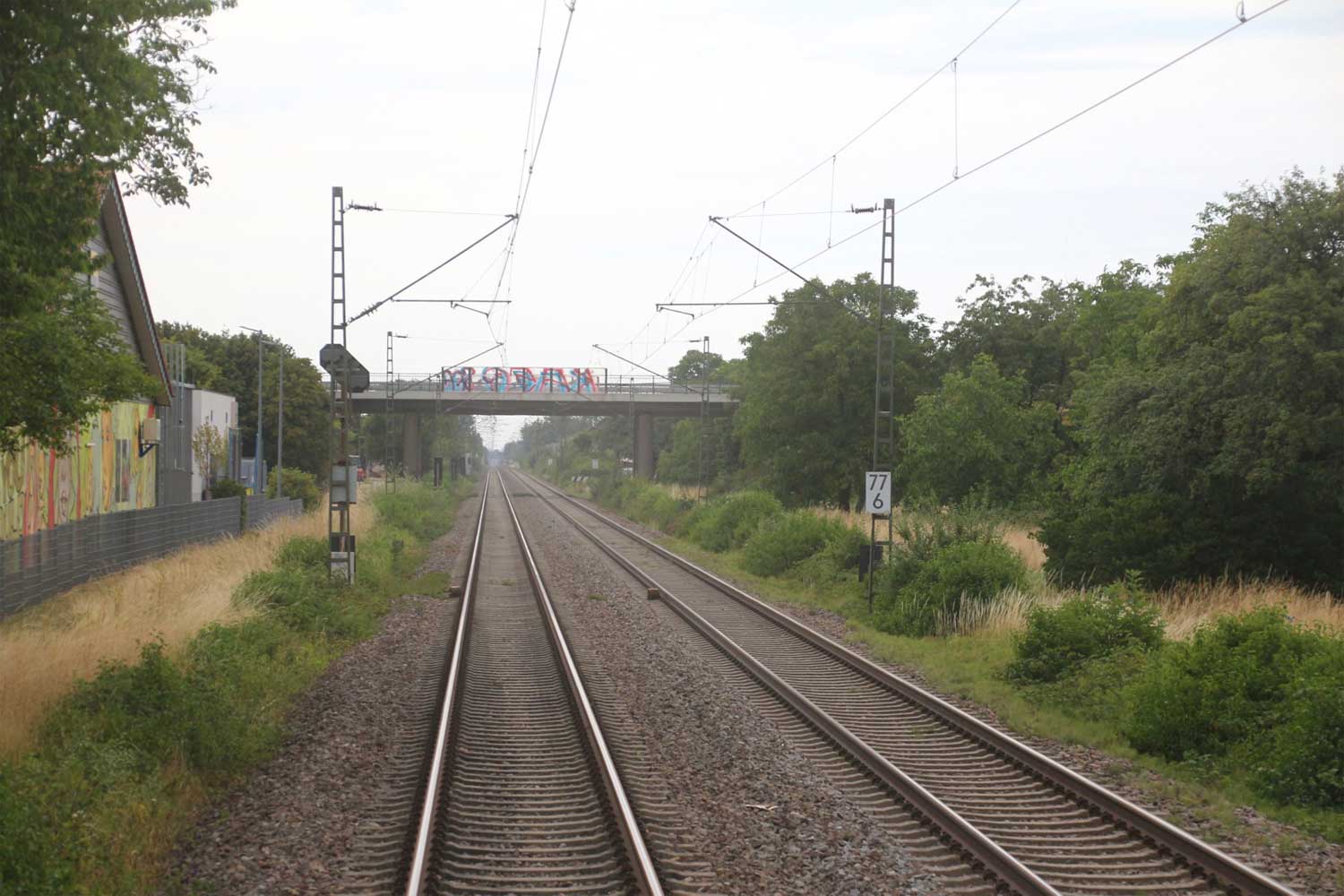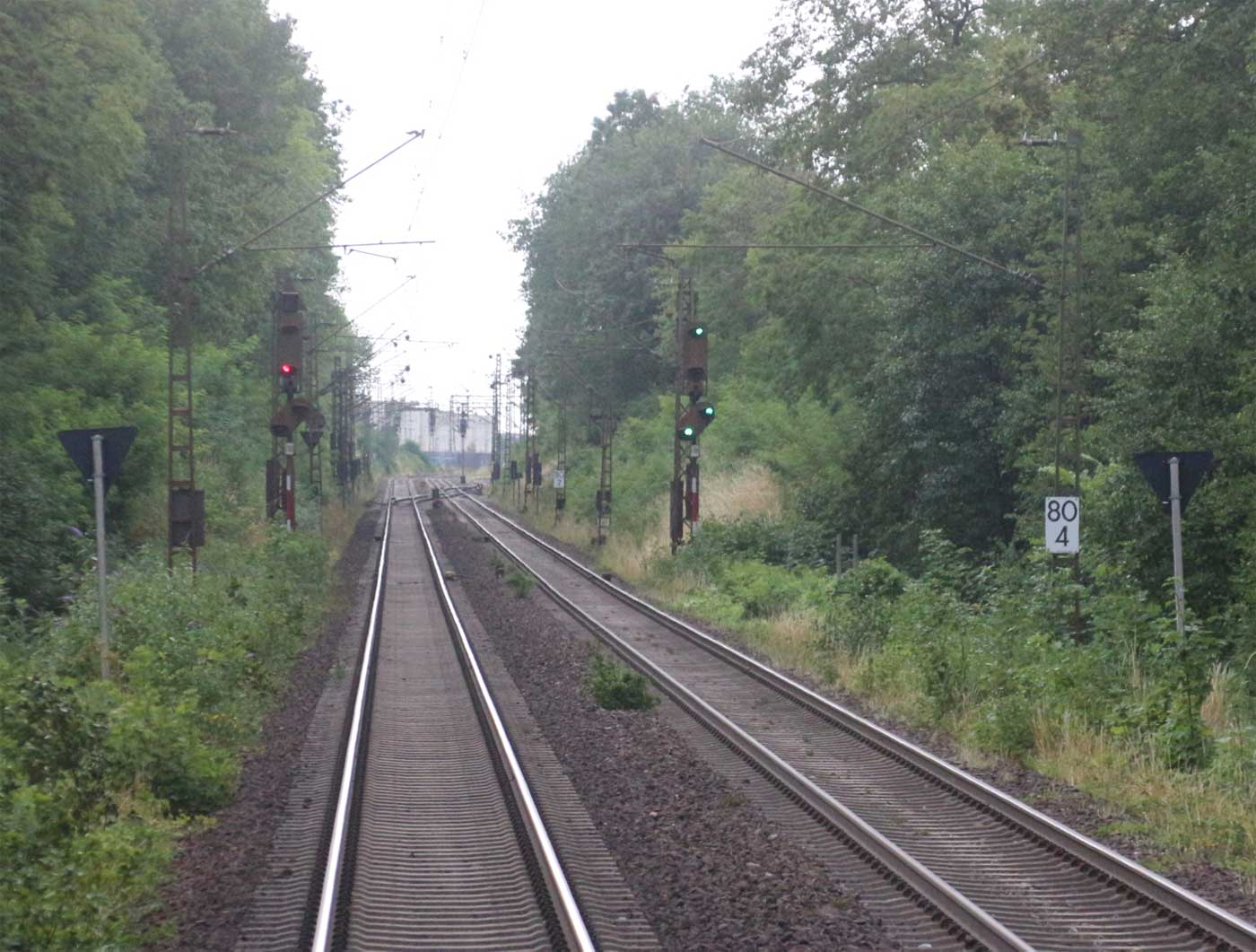 km 82,4 und km 82,6 in Rastatt - Blick Richtung Mannheim