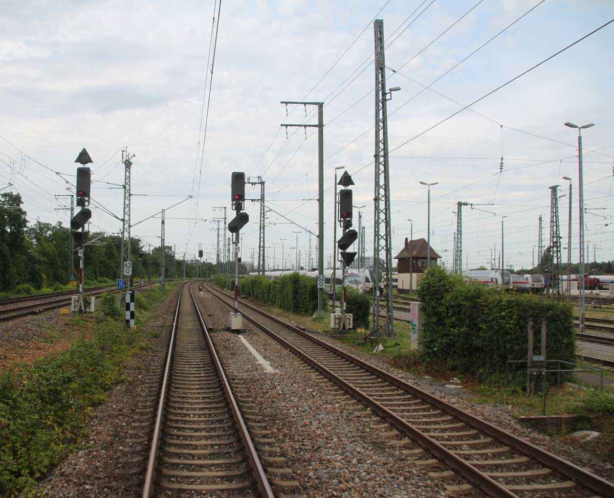 Die Strecken Richtung Basel Bad Bf - Konstanz (4000); Stuttgart (4080) und Rastatt (4020) verlaufen zu nächst parallel.