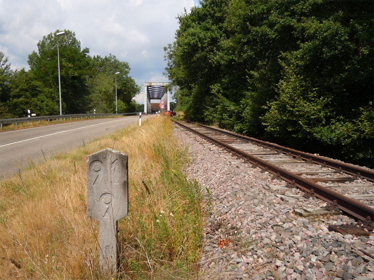 km 92,664 von Mannheim = km 28,540 von Haguenau [Hagenau (Els)]
