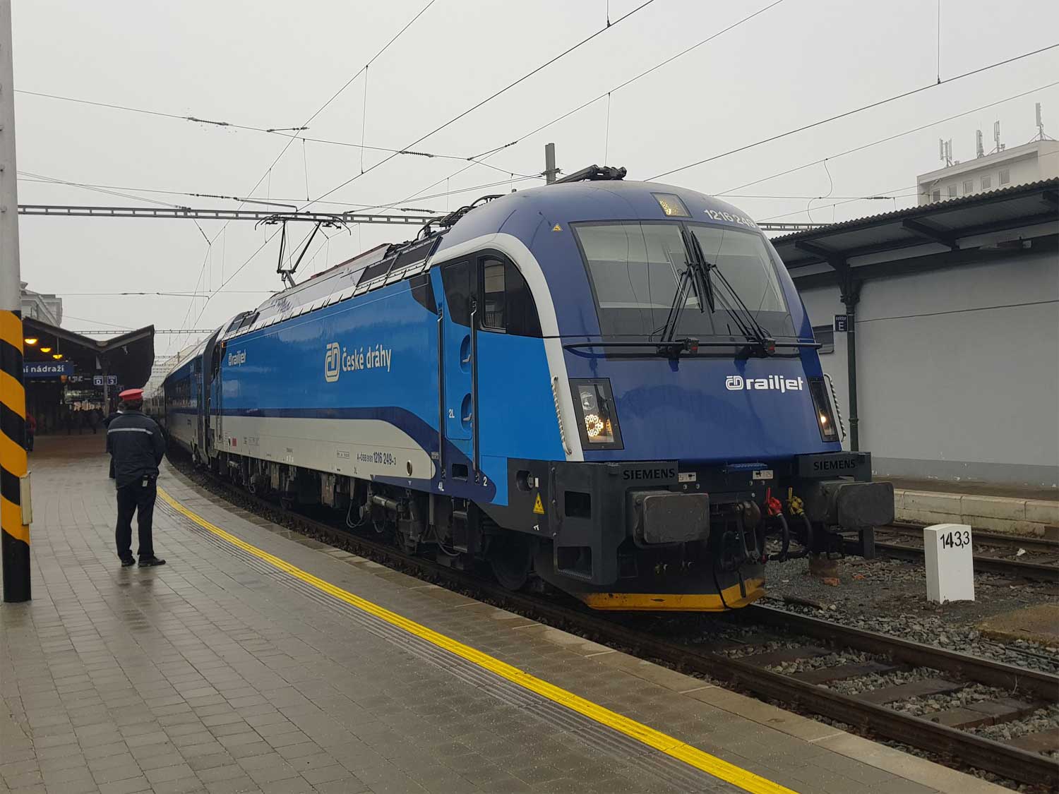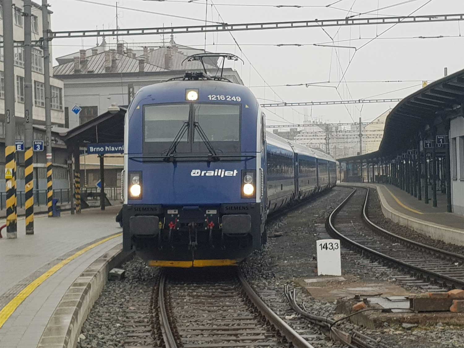 km 143,3 in Brno hl.n. (Brünn Hbf) - 1216 249 mit RJ 75 "Vindobona"