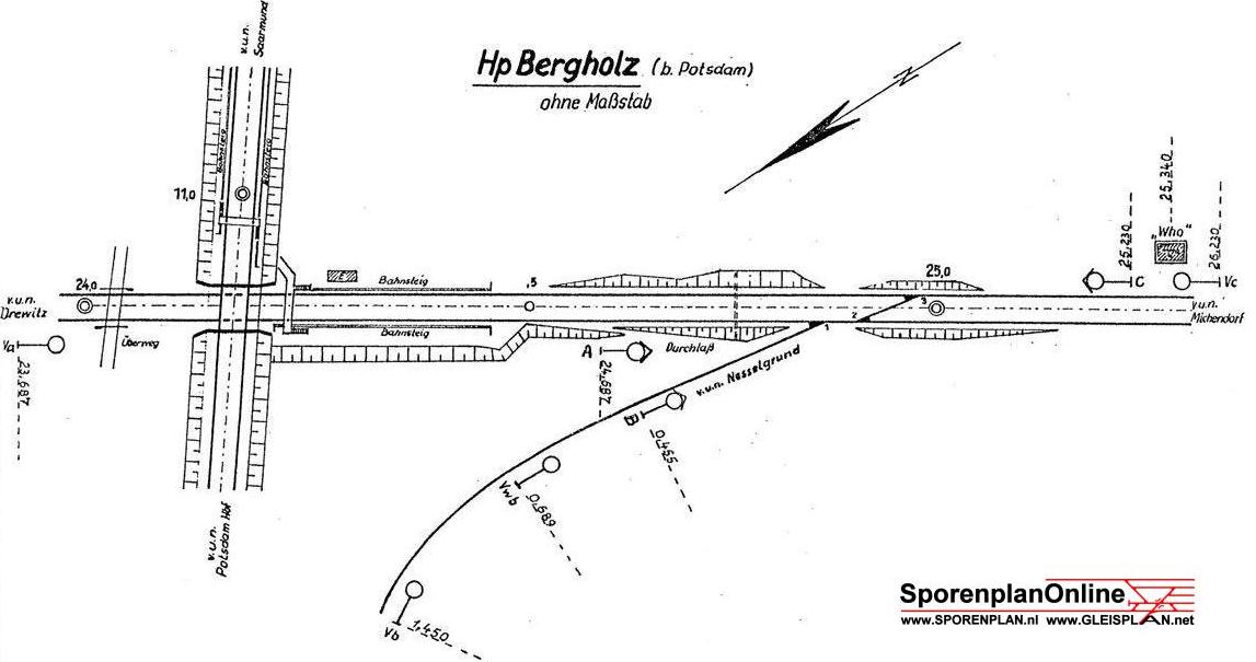 Bergholz (b. Potsdam) | 24,3 | km 11,1 der Strecke Golm 0,0 - Saarmund 14,66 |