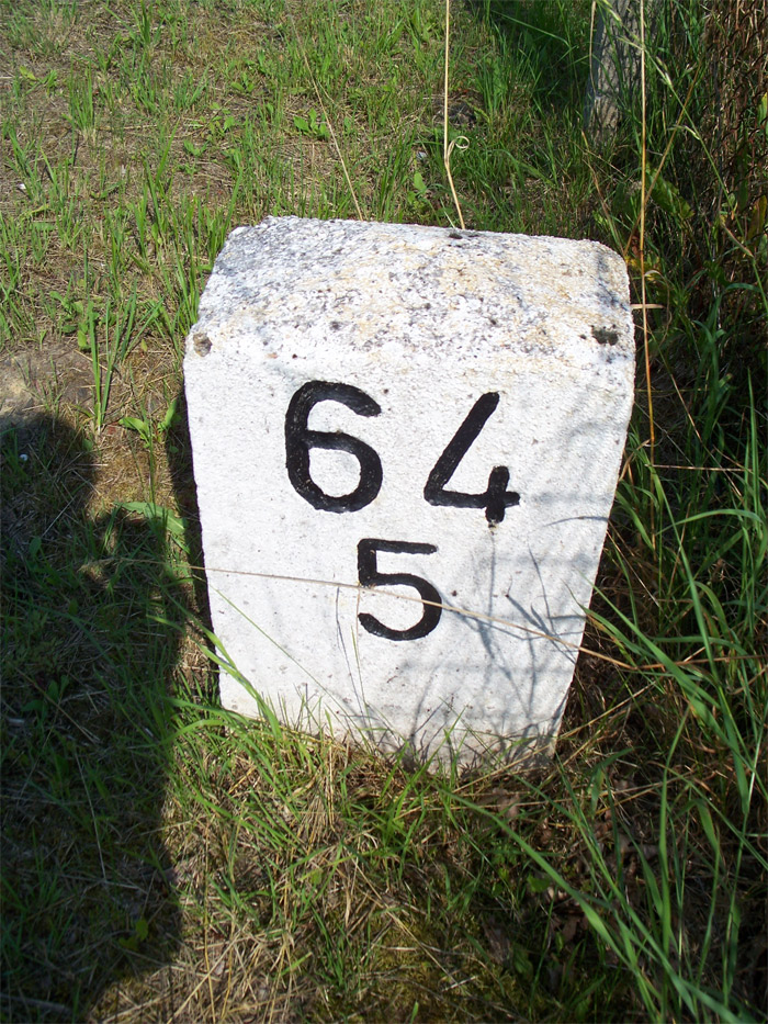 km 63,6 (Tafel) und km 63,5 (Stein) zwischen Baitz und Bad Belzig - Blick Richtung Berlin