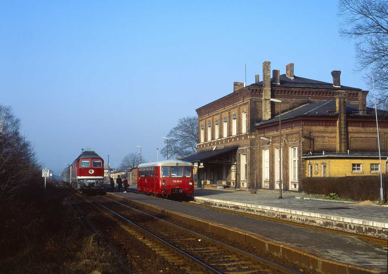Belzig Reichsb | 65,23 | km 21,6 der Strecke Treuenbrietzen 0,0 - Belzig 21,6 - Brandenburg Neustadt 56,5 - Rathenow 90,25 - Neustadt (Dosse) 125,6 (Spitzkehre in Belzig) |
