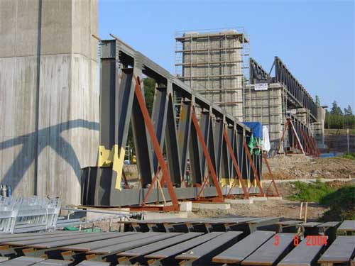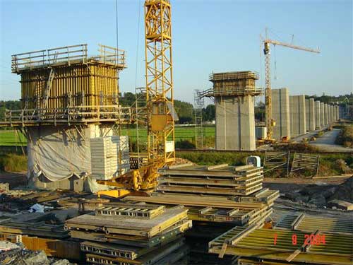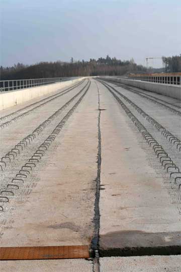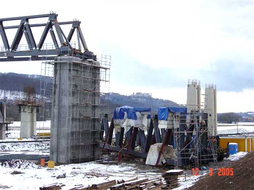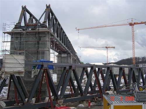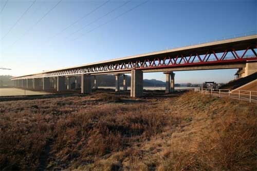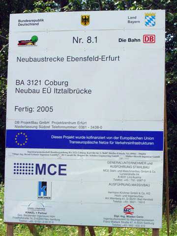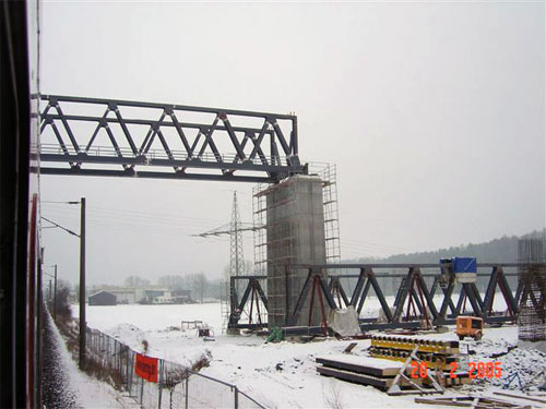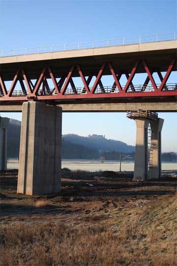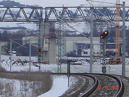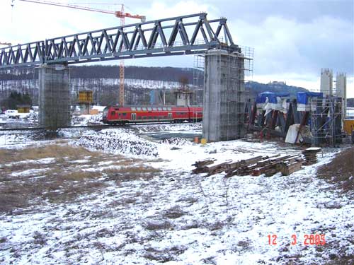 Hinter der Eisenbahnbrücke die im Bau befindliche Autobahnbrücke der A73