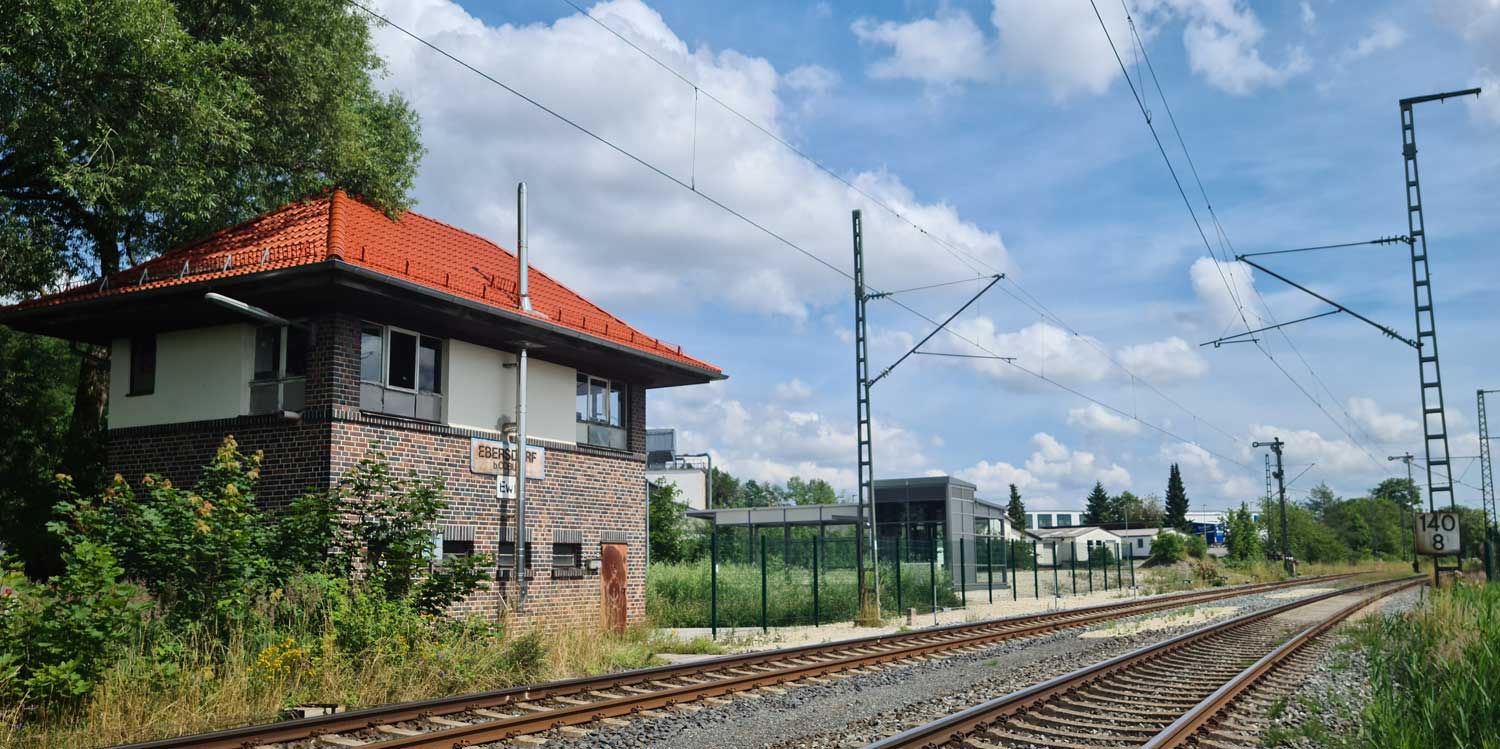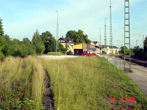 Hinter dem Bahnhofsgebäude befindet sich die ehemalige Strecke nach Rossach