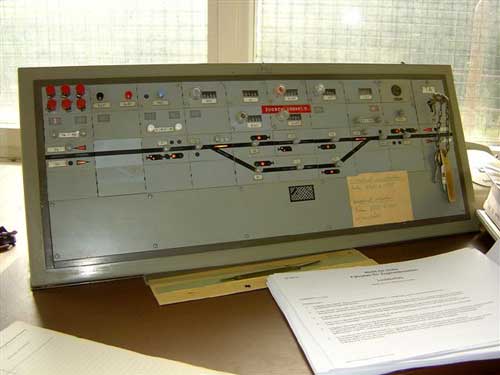 Stellwerk des Kreuzungsbahnhofs Seehof Normalerweise wird Seehof von Lichtenfels aus ferngesteuert. Nur bei Störungen wird das Stw. örtlich besetzt. (Juli 2004) |