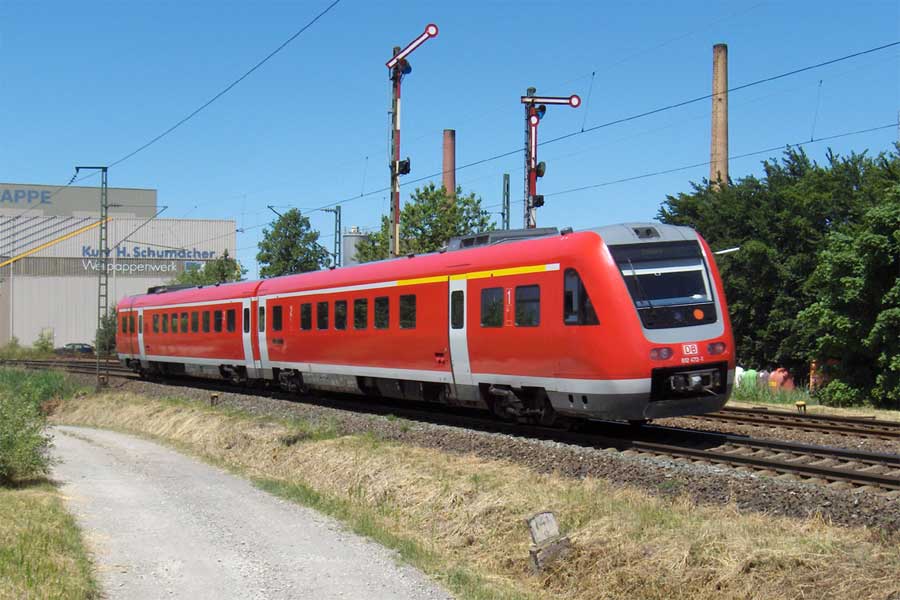 km 144,1 Baureihe 612 in weißer Lackierumg (Foto: Dirk Ammon, Juni 2005) |