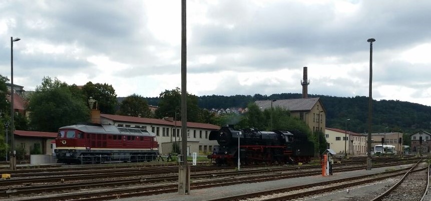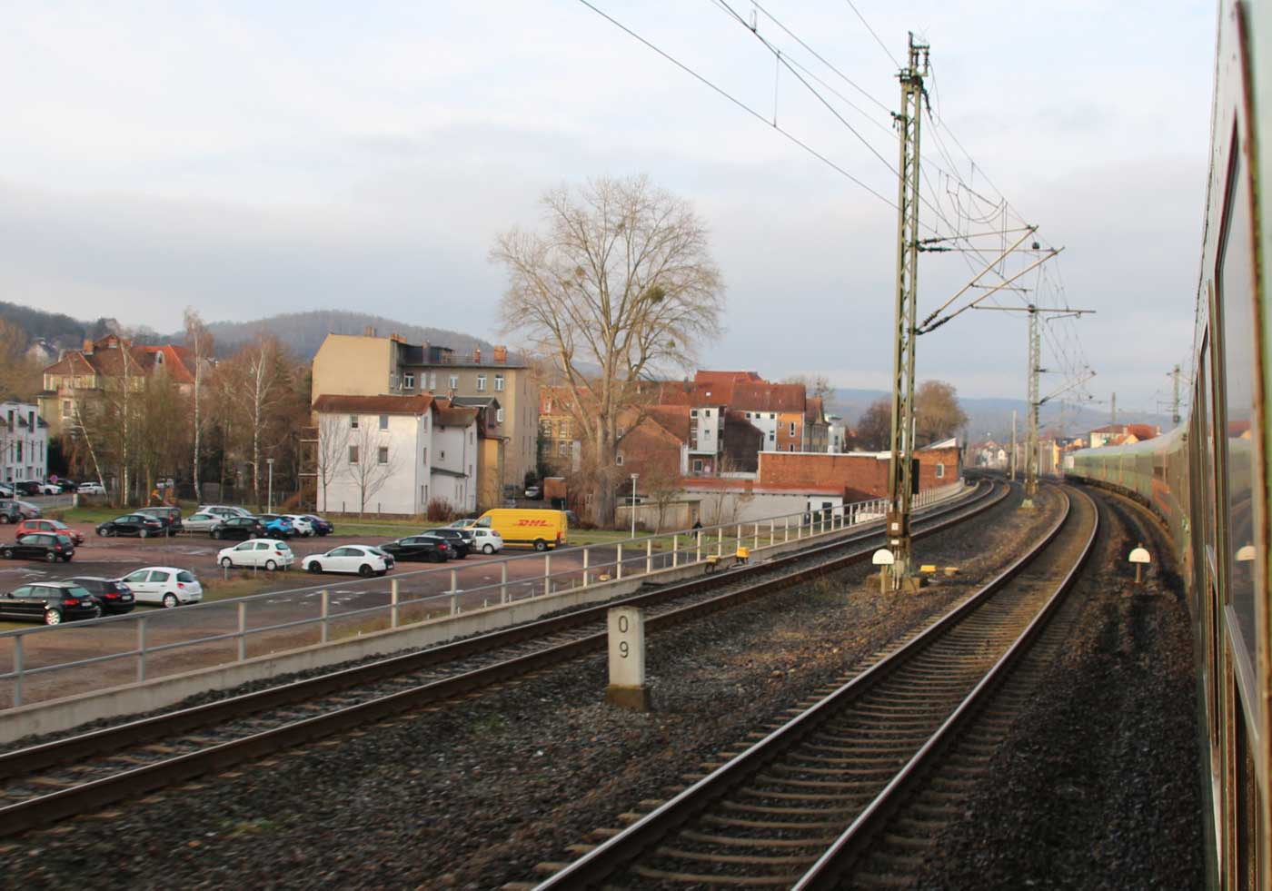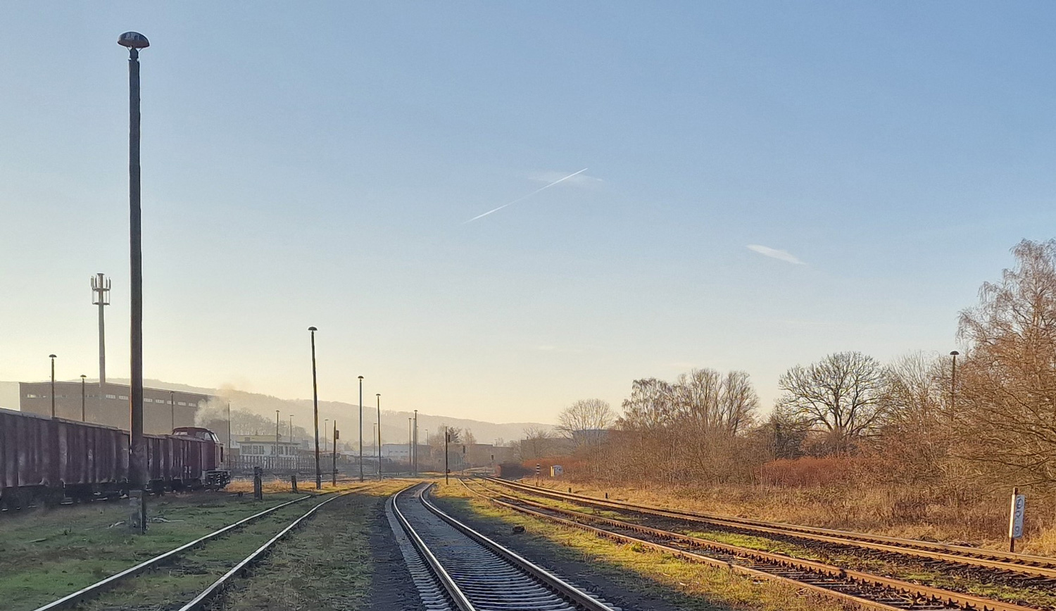 Rechts die Strecke Halle (Saale) Hbf - Erfurt Hbf - Eisenach - Bebra - Guntershausen