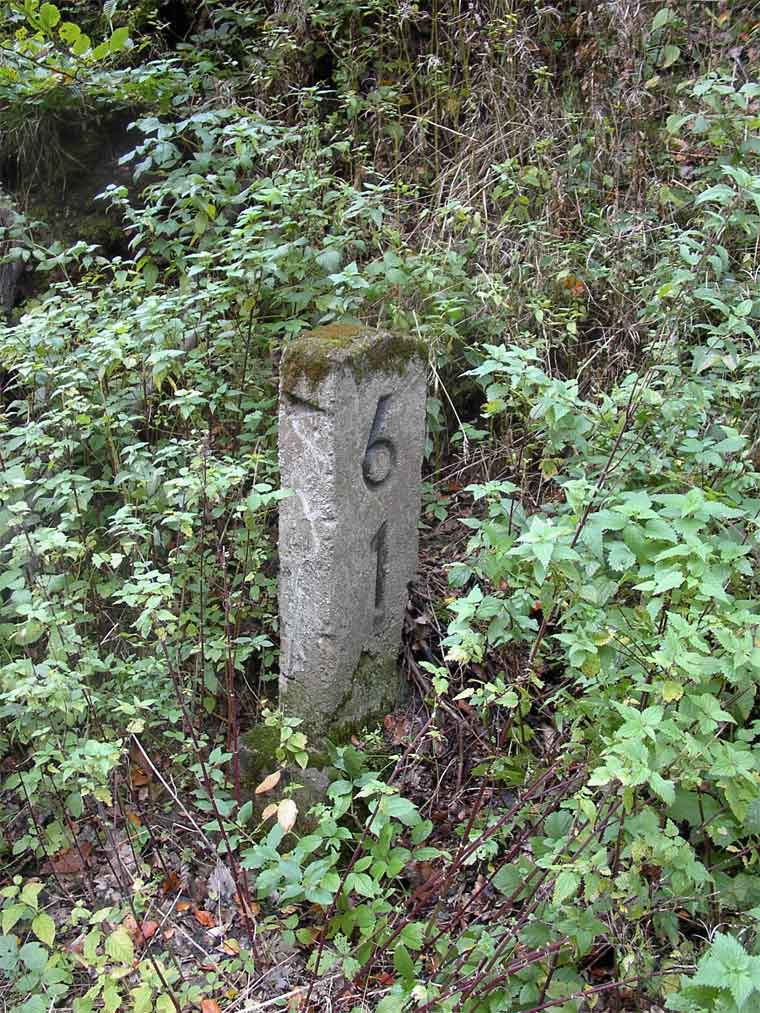 km 60,0 in Meinigen - ganz alter Stein und alte Tafel