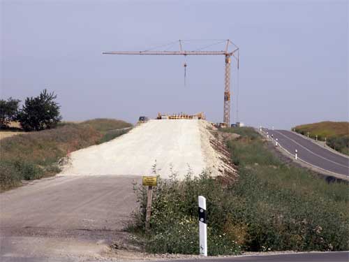 Straßenrampe aus Ri Vieselbach Rechts die Umgehungsstraße während des Baues Juli 2006 |