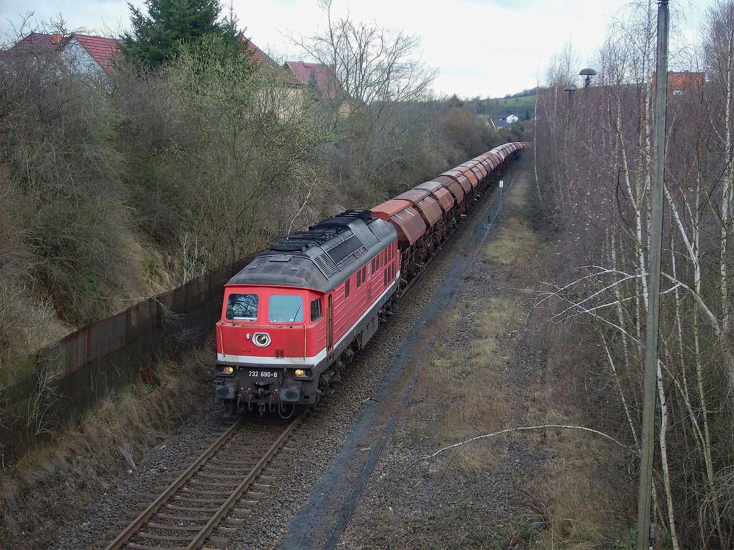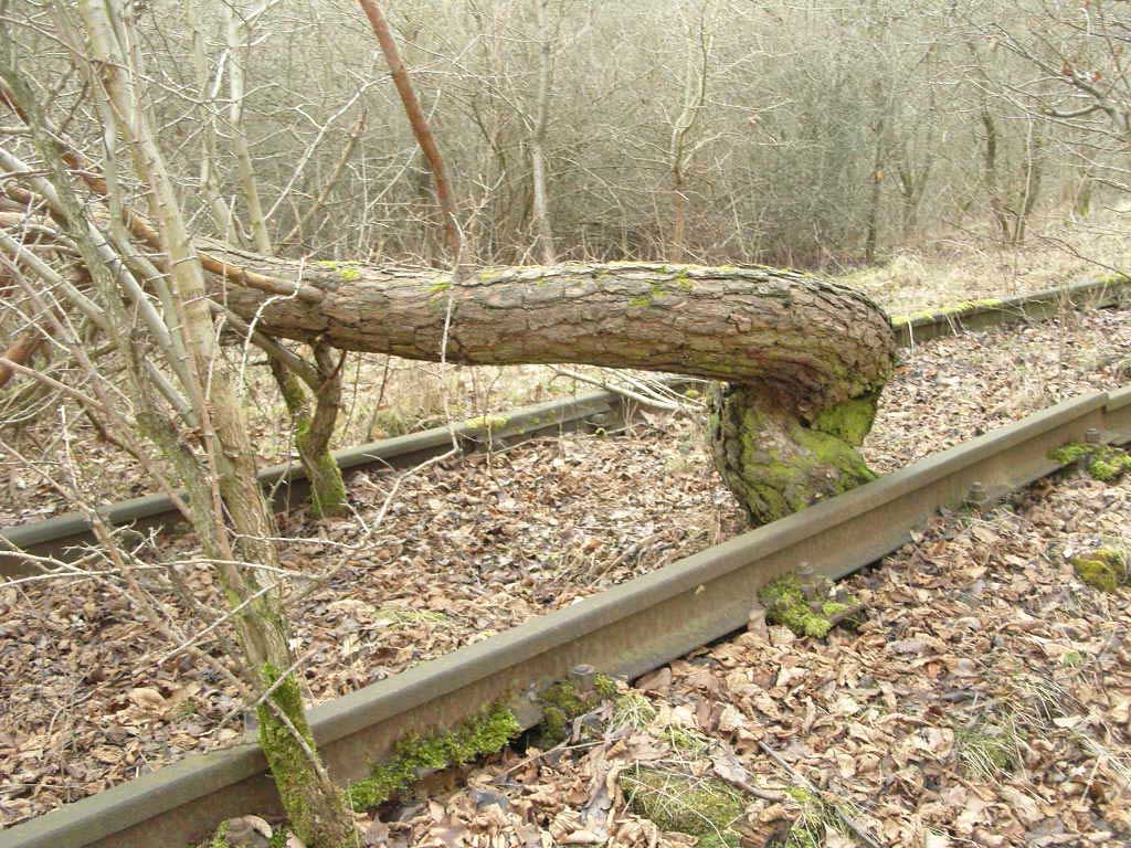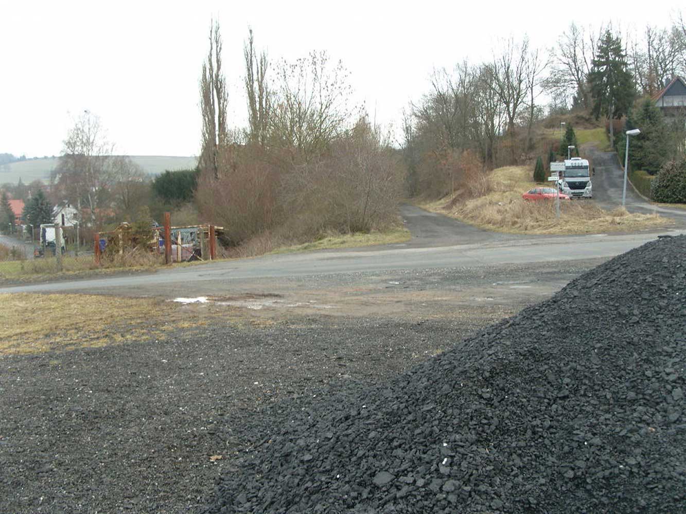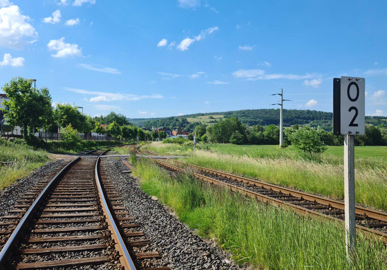 Der Weg ist das ehem. Gleis ins Ulstertal, links davon unter dem Busch das Gleis