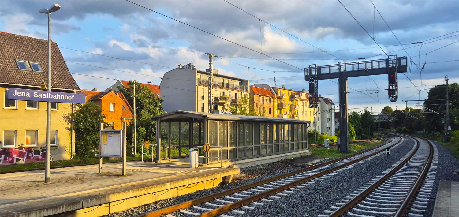 | Göschwitz | 32,31 | km 27,49 der Strecke Weimar 0,0 - Jena West 22,59 - Gera Hbf 67,93 |