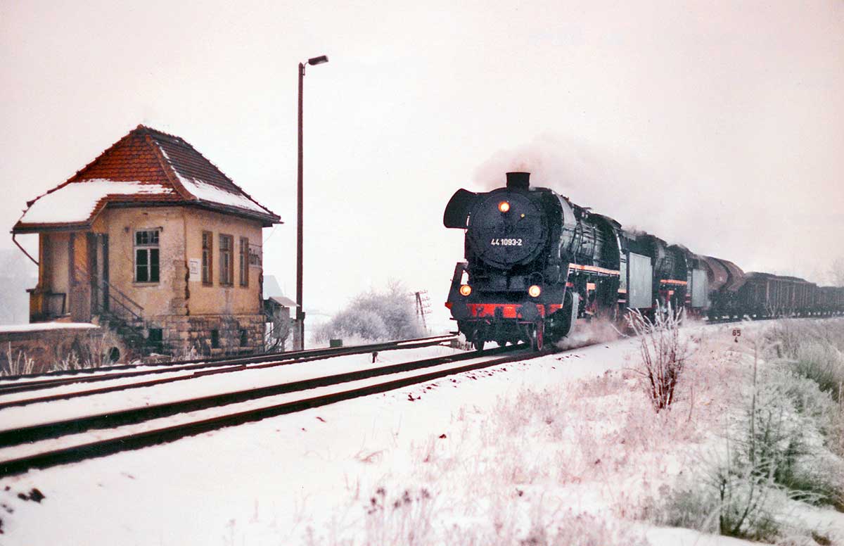 Schön auch noch zu erkennen die rückgebaute Oberleitungsanlage zwischen Neudietendorf und Arnstadt.