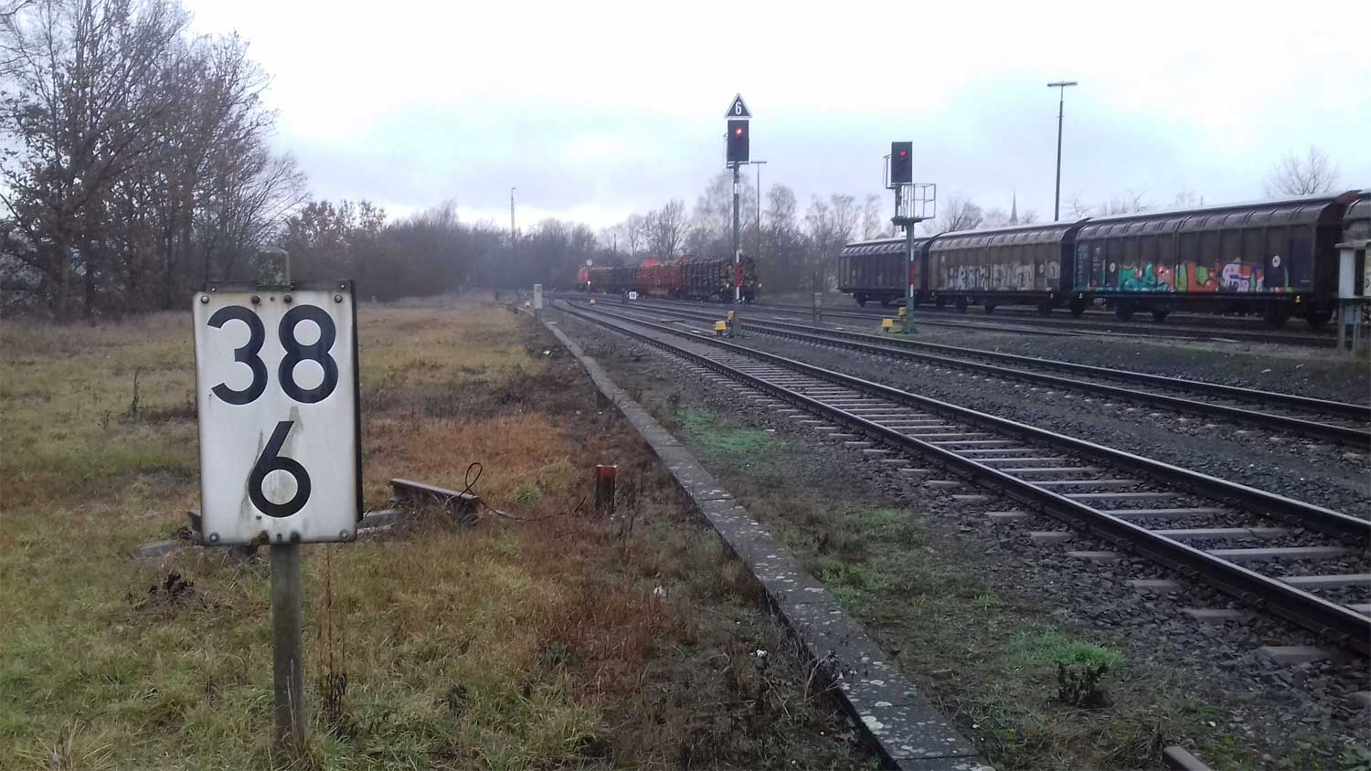 Korrespondenzpunkt der beiden Kilometrierungen ist die Spitze der Weiche 5: | ||