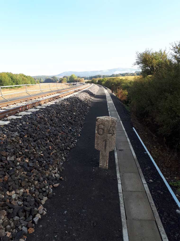 Rechts km 73,6 der Strecke Schweinfurt - Meiningen und links km 65,0 der Strecke Eisenach - Lichtenfels am Hp Untermaßfeld